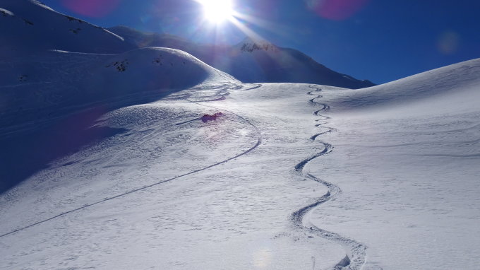 Vor uns haben zwei Türeler gespurt aber nur noch bis zur Querung zu nächsten Couliübergang danach sind sie wieder Abgefahren