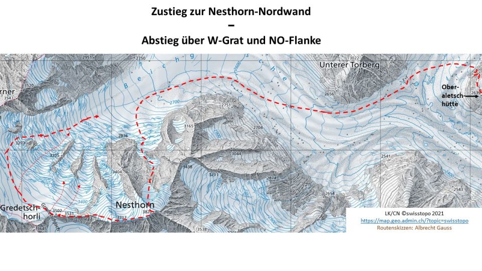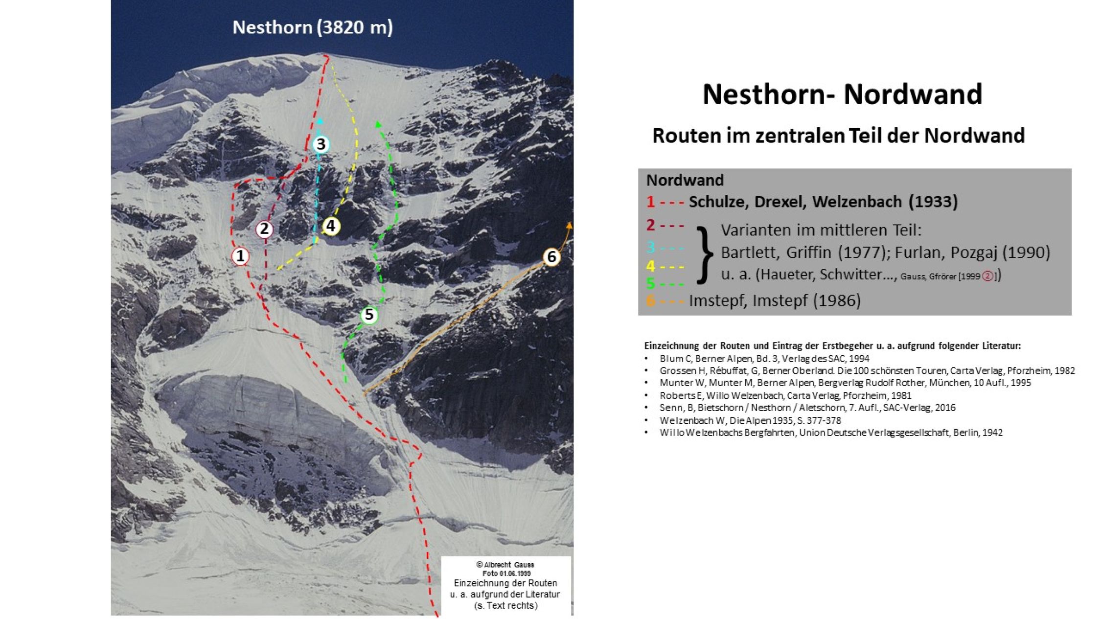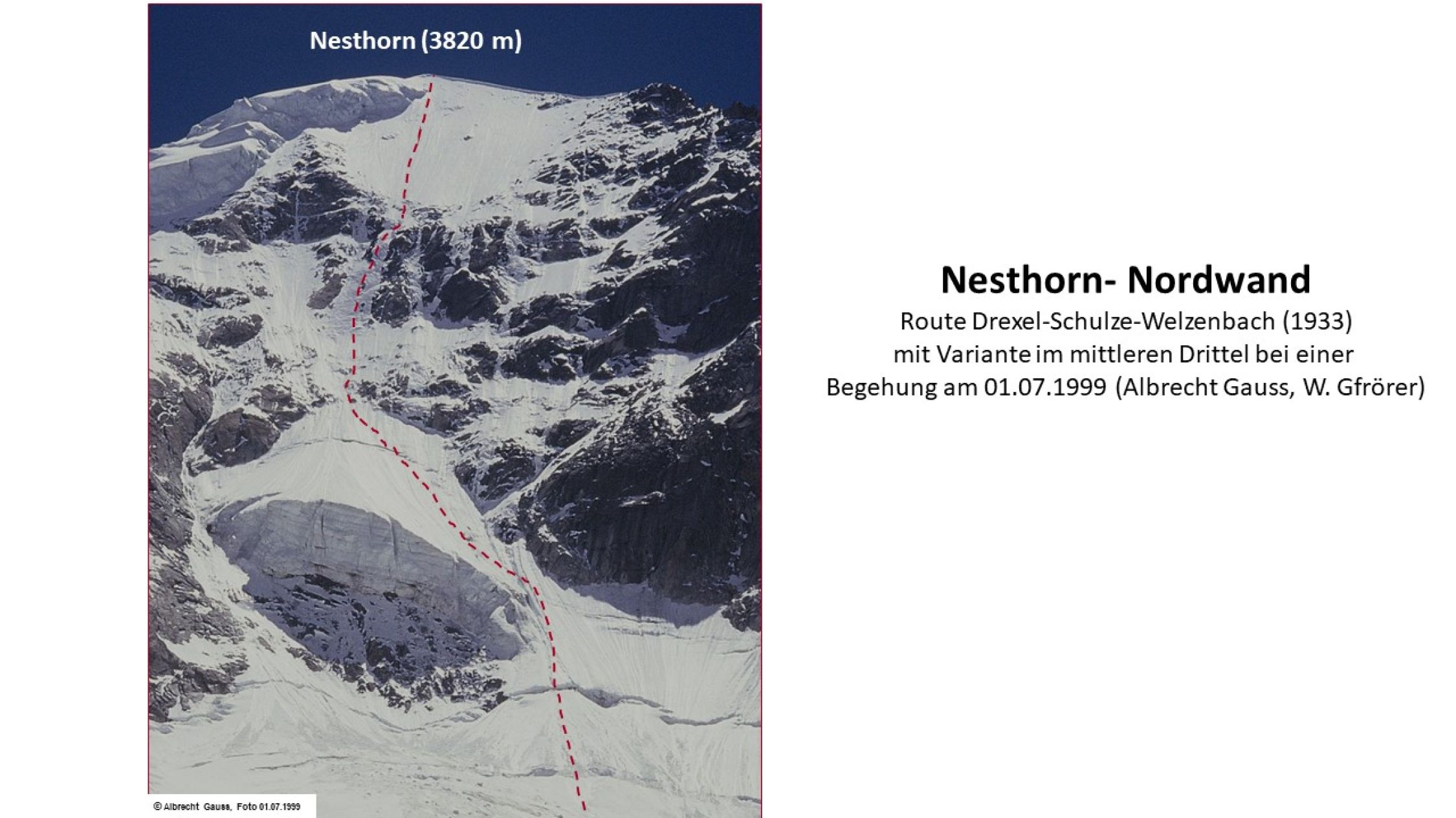 Nesthorn (3821m): Nordwand - Route Drexel-Schulze-Welzenbach mit direkter Variante im mittleren Drittel