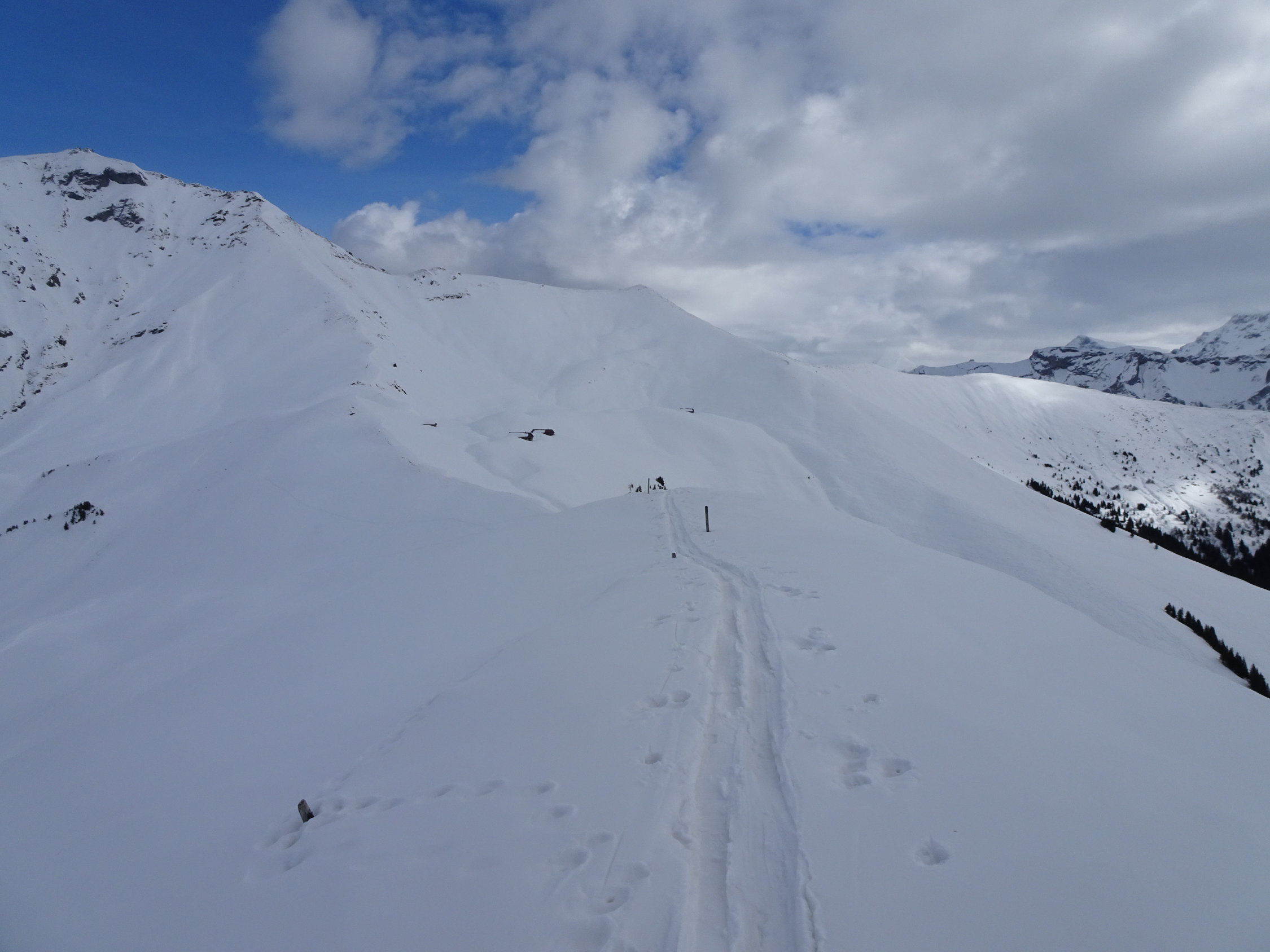 Wunderbare Überschreitung mit tollen Hängen. Die Spuren zeugen von der beliebtheit diese Berges oberhalb der Lenk. Sehr lohnend.
