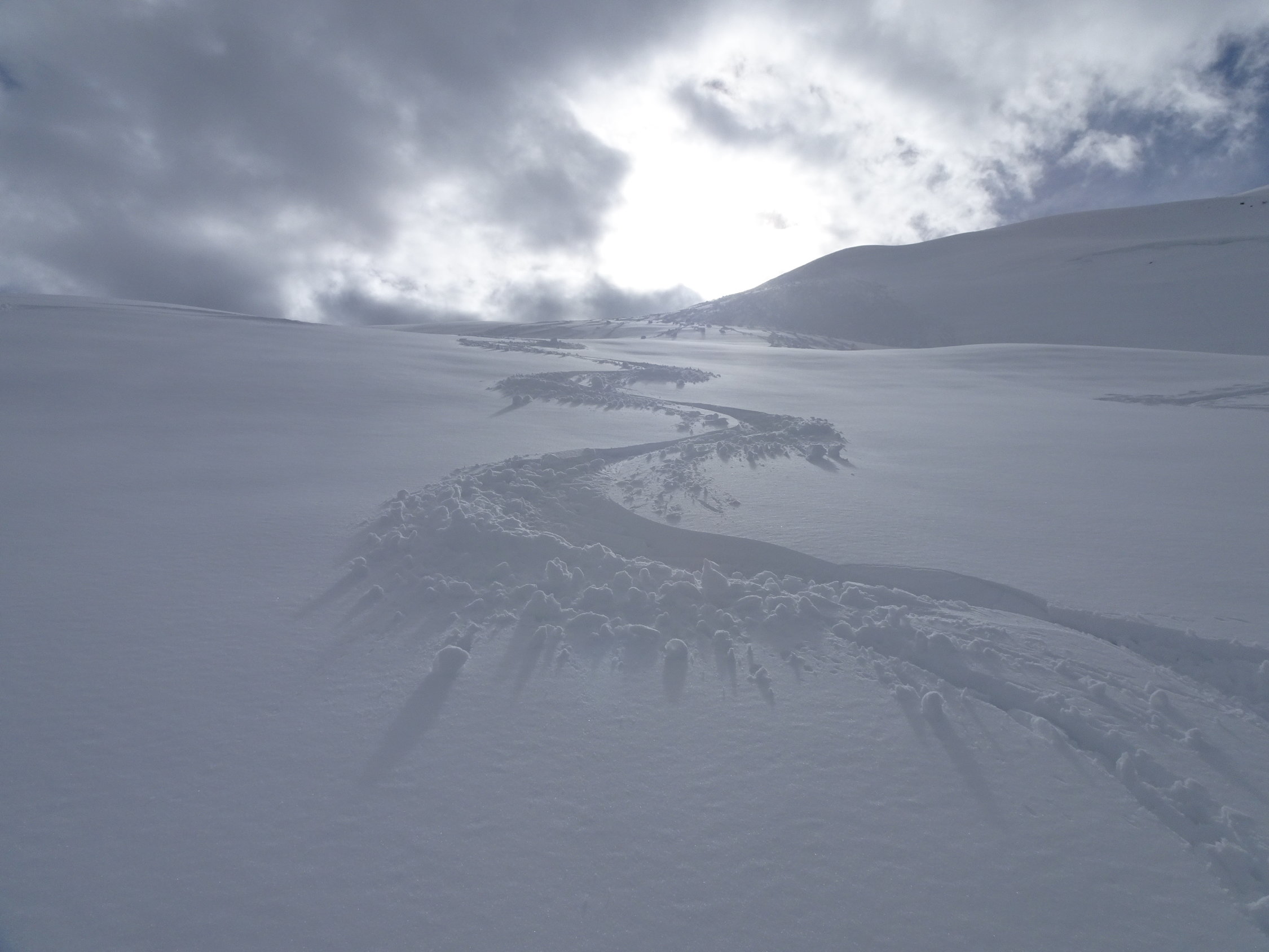 Schnee: wider erwarten sehr gute Verhältnisse, Abfahrt vom Tierberg zum Schatthore Pulver, dann schwerer Pulver und ganz am Schluss(ab Siteweideni) Nassschnee