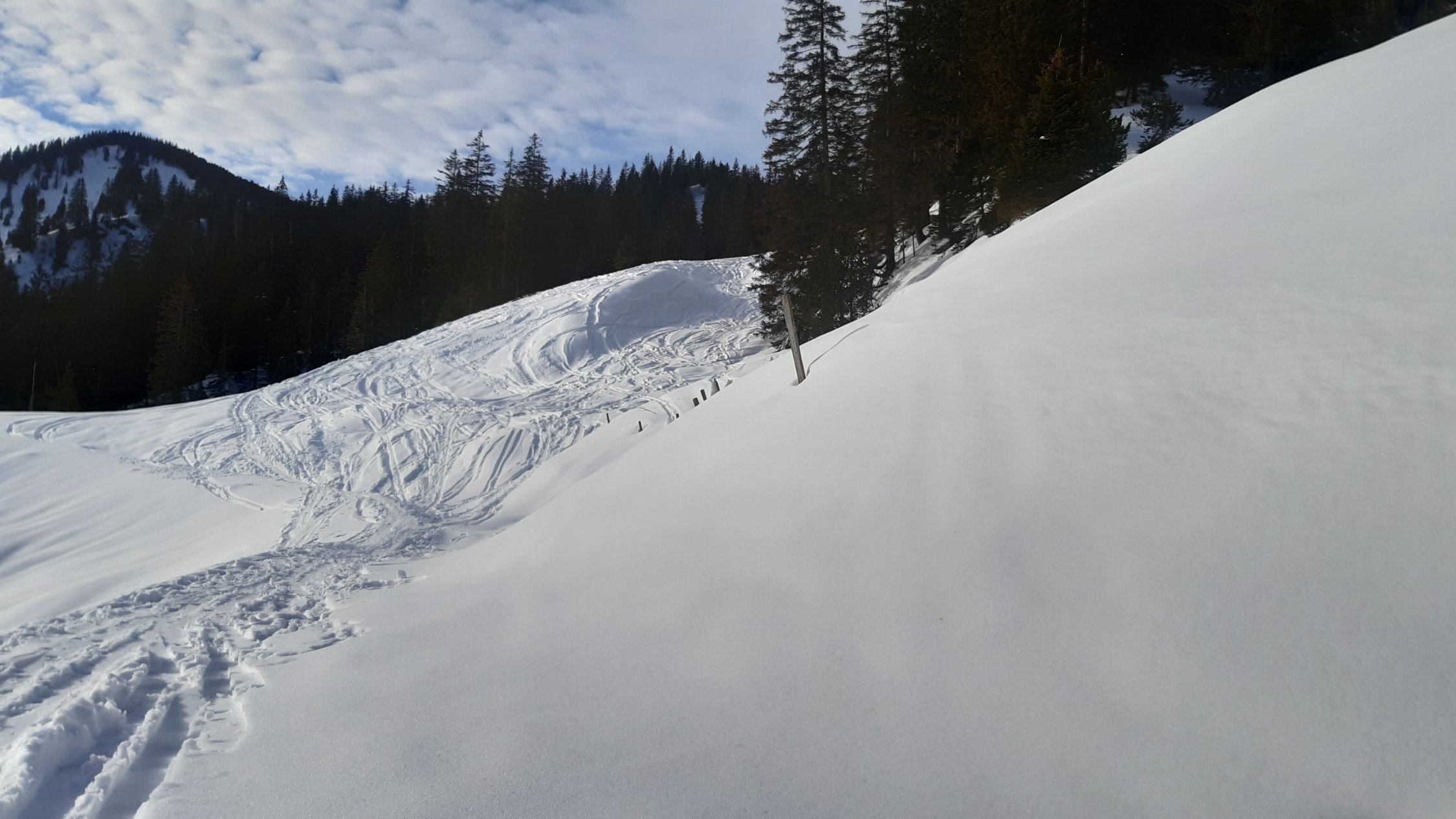 es hatte nicht abestrahlt, dafür reingeregnet. Der Schnee war feucht und schwer, hat extrem gebremst auf der Abfahrt.