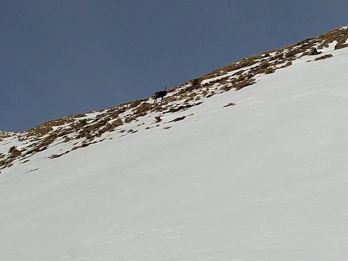 Genügend Schnee von Beginn an. Unten hart gefrohren da es reingeregnet hat bis ca. 1600m, dann etwas Pulvetschnee auf harter Unterlage, teils abgeblasen. Harscheisen besonders in der Schlüsselstelle vor Obrist Arni von vorteil.