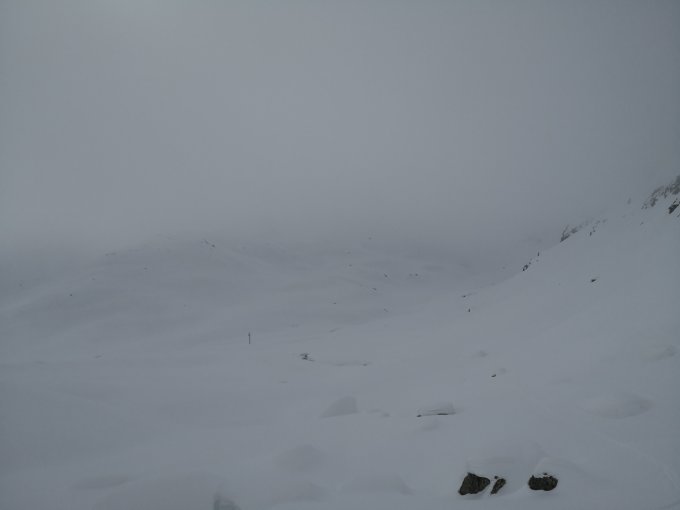 Zuerst Sonne, dann zog der Nebel ein vom Bergell, lag ca. Zwischen 2300-2500m.oberhalb toller Pulverschnee, bei Abfahrt in dfn Nebel dann Blindflug und unterhalb Deckel, ksum vernünftig zu fahren.