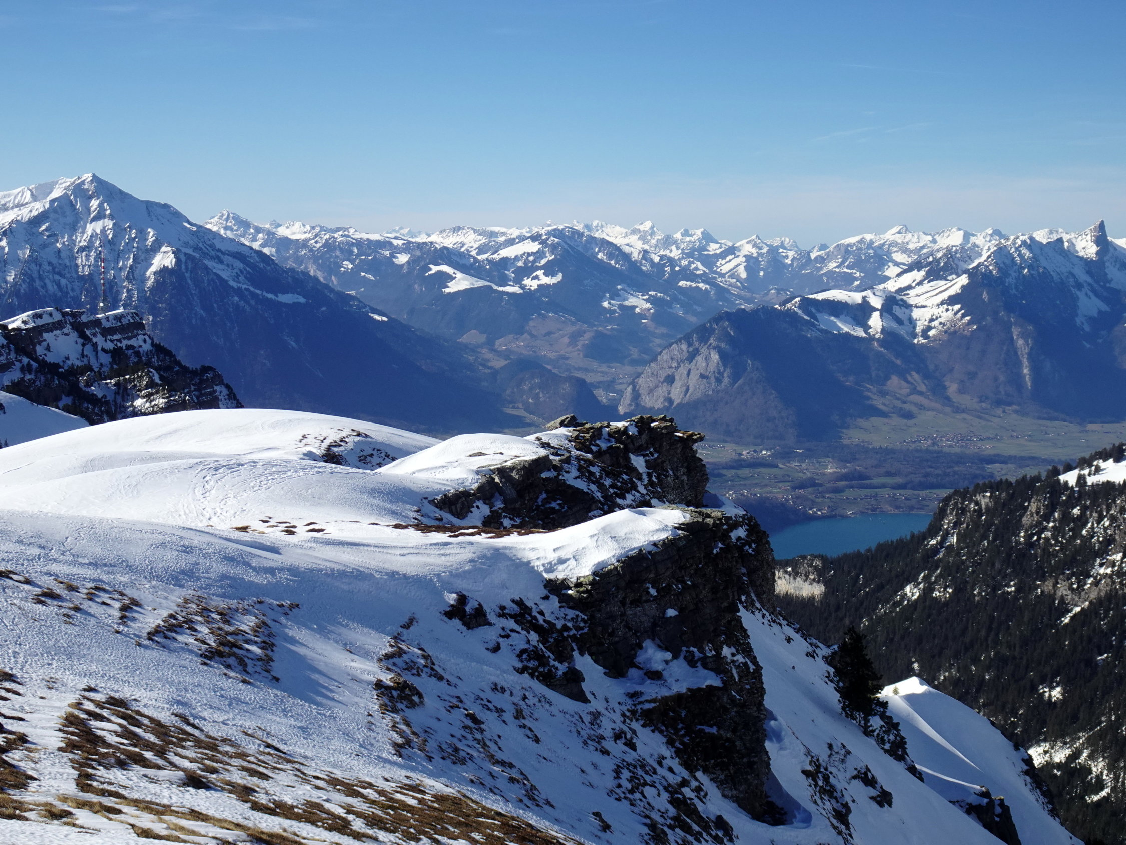 Bahn hinauf, machte meine Tour praktisch allein und, als ich bereits im Abstieg war , kamen die ersten Wanderer. Die Gondelbahn vom Niederhorn nach Beatenberg um 1200 war praktisch leer, dafür der Platz vor der Bahnstation in Beatenberg voll. Das Personal hat , dank Startbahnen, die Leute so gut kanalisiert, dass es, ohne Gedränge jeder gut vorwärts kam. Die Bahn zur Beatenbucht hingegen war nur mit ca 10 Personen besetzt. Der Zug nach Bern war um 13 Uhr nur halbvoll. Ideale Verhältnisse. Frühaufstehen hat sich gelohnt