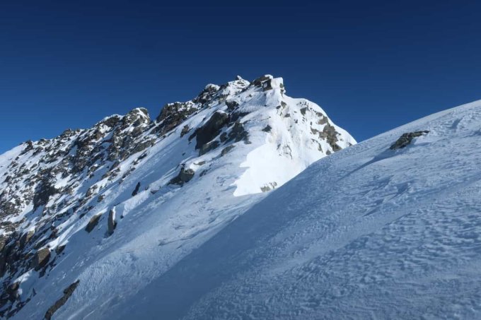 Aufstieg sollte jetzt gut machbar sein für einige Tage mit dieser Spur im Grat.