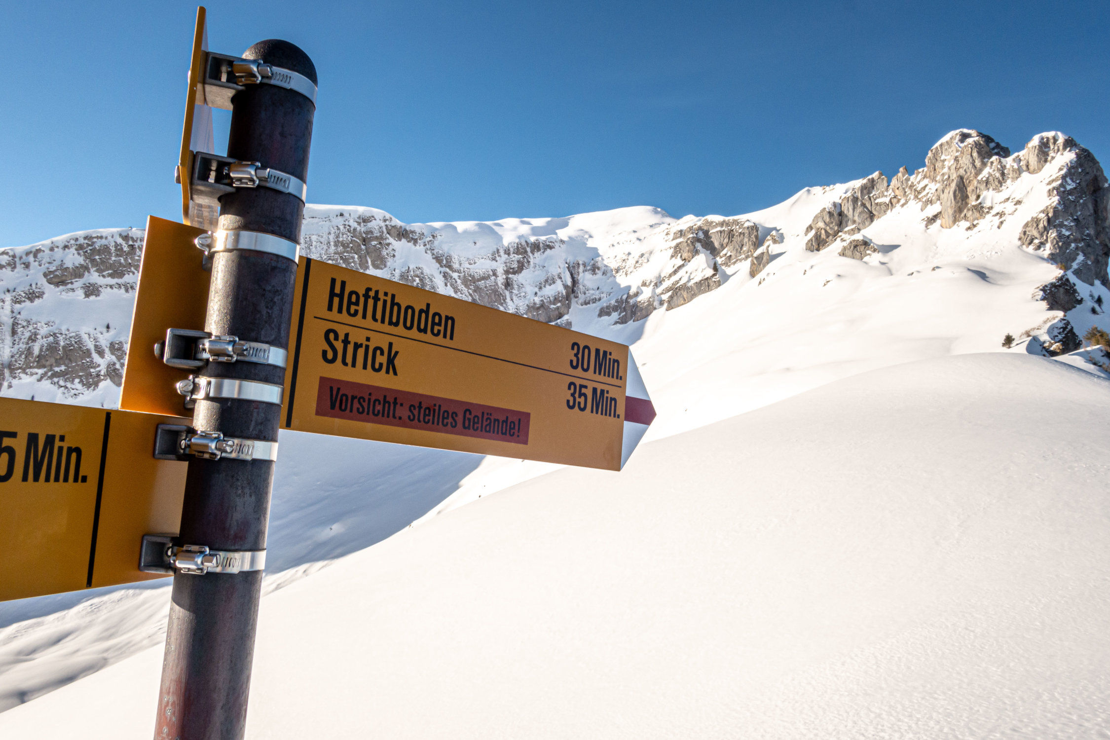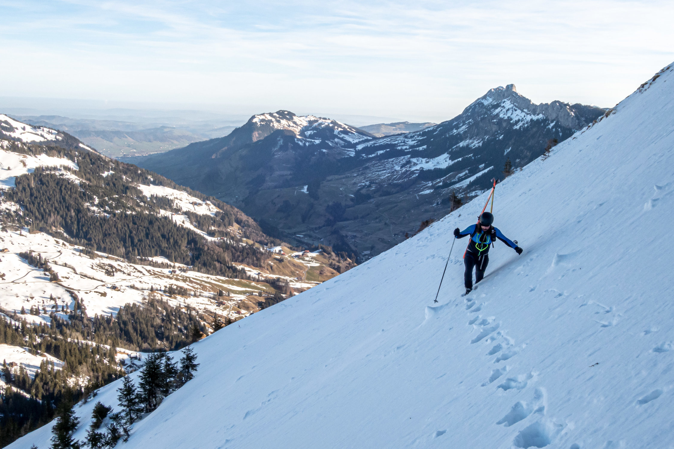 Start in Flühli Torbach direkt dem Skilifttrasse folgend weiter Richtung Emmental und von da zur Ober Gummenegg. Durch die Steilstufe auf den Strick. Von da weiter direkt dem Grat folgend rüber zum Heftiboden und weiter via Turm zum Hächle. Über die beiden Felseinschnitte weiter zum Hengst und dann vom Hengst bis zum Schibegütsch traversiert. Abfahrt zur Alp Schlund und Salwideli und kurzer Gegenanstieg um nach Sörenberg zu gelangen