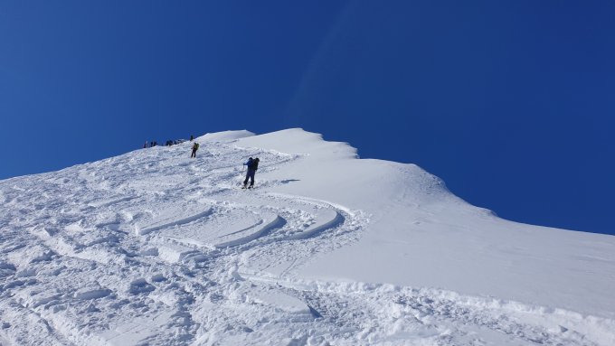 Tour viel begangen dadurch nur noch vereinzelt unverspurte Stellen nach dem Neuschnee ca. 40 cm.