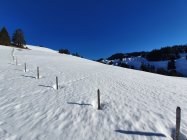 Schnee gibt es durchgehend ab der Pfruendweid, wo es auch 2 Parkplätze gibt. Das schmale (geteerte) Waldsträsschen ist bis zu diesem Punkt ausgeapert. Allerdings lagen unter der Zugwaldfluh einige grössere Steine auf der Strasse.