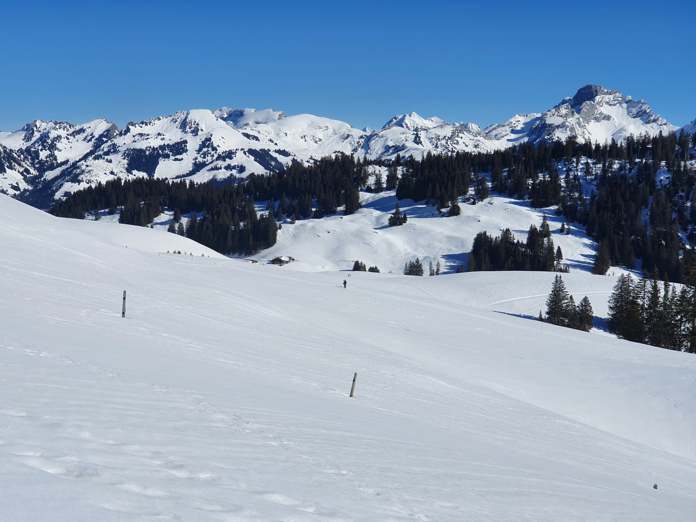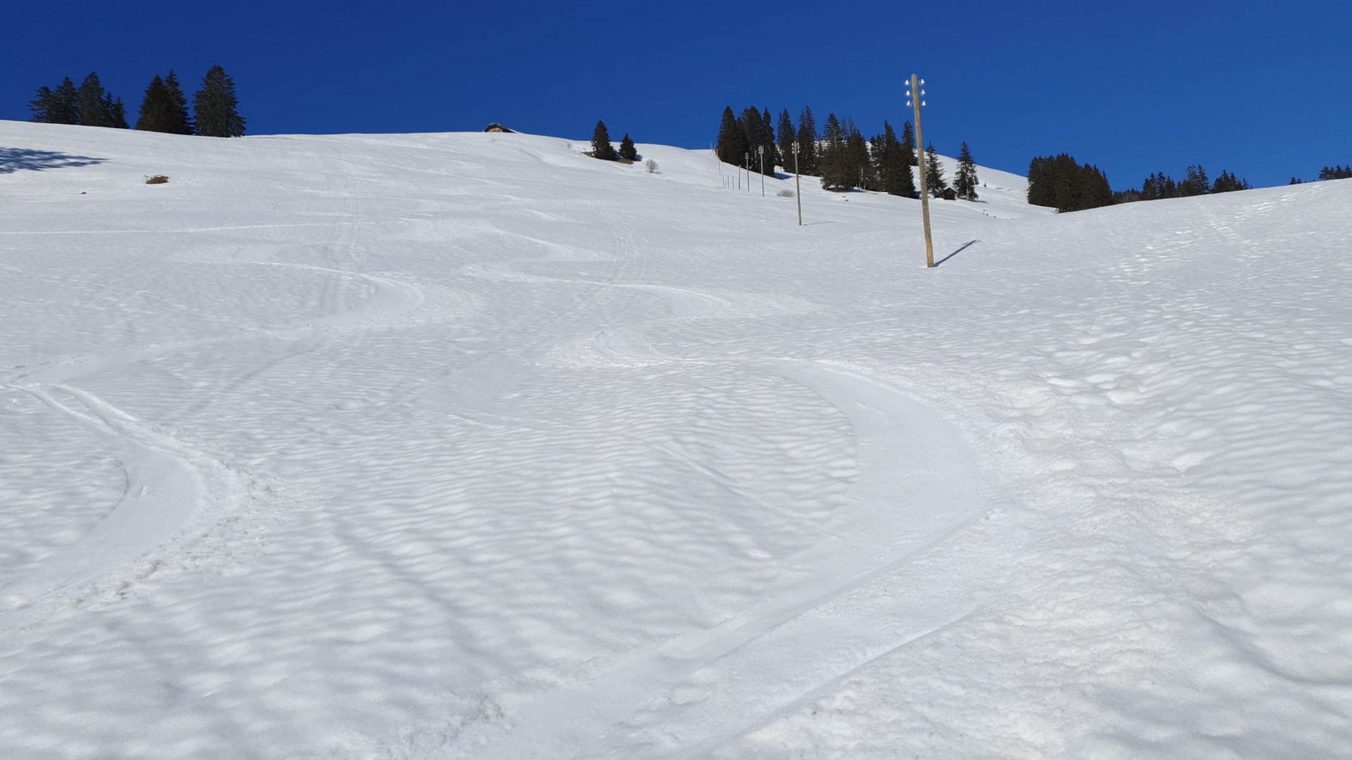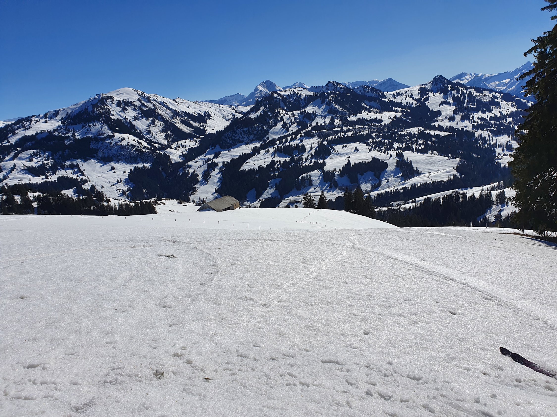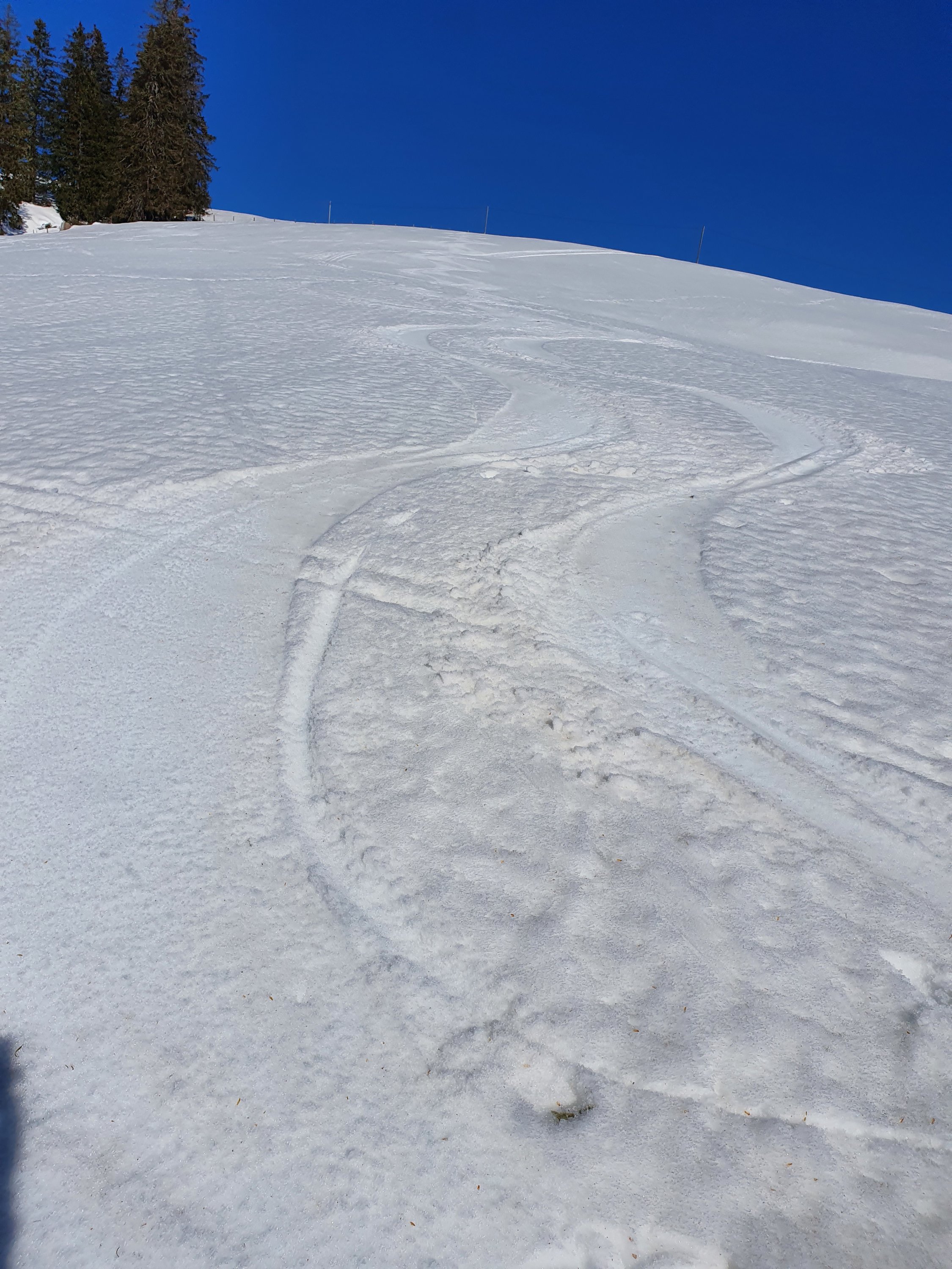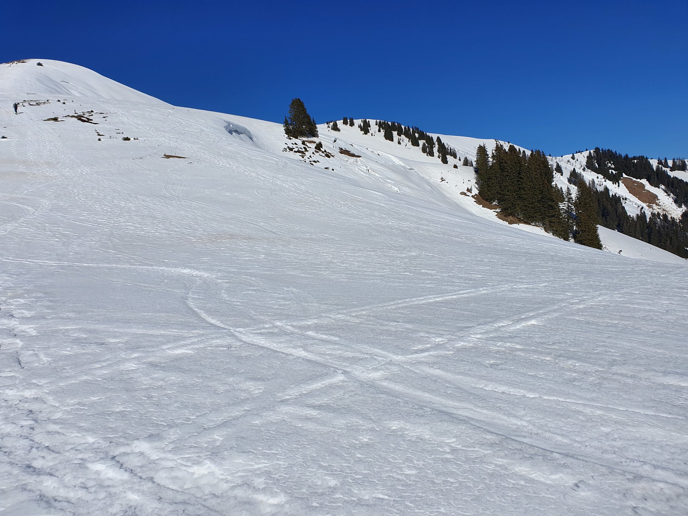 Am Wannerhöreli vis à vis (hinterer Reichenstein) dominierten auf gleicher höhe grün durchzogene Kuhwegli-Hänge. Die Sifertsegg liegt da etwas günstiger, lange wird as aber im unteren Bereich ohne Schneefall nicht mehr gehen.