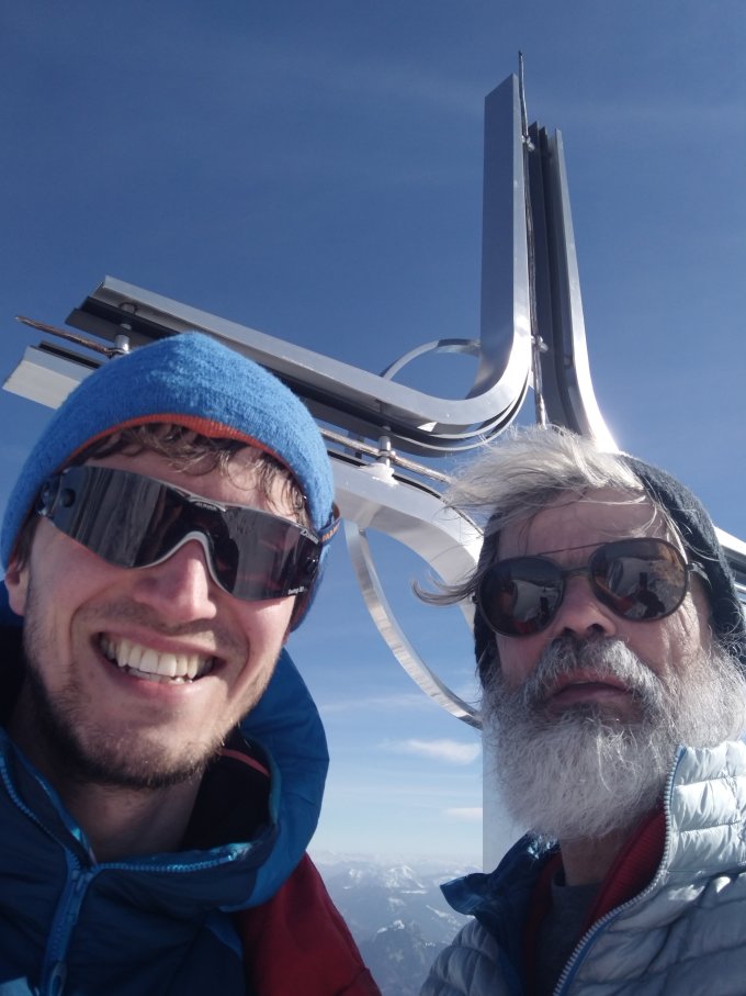 Die ersten 30 Minuten steht Ski tragen auf dem Programm. Danach am Samstag zumindest noch sehr hart gefrorener Schnee (Harscheisen absolut notwendig) in der Früh. Die Sonne kommt auch in die Umgänge kaum rein, sodass sich der Schnee noch gut hält. Aktuell noch ausreichend vorhanden. Der Übergang vom Vor- zum Hauptgipfel teilweise sehr abgeblasen und viele Steine schauen raus.