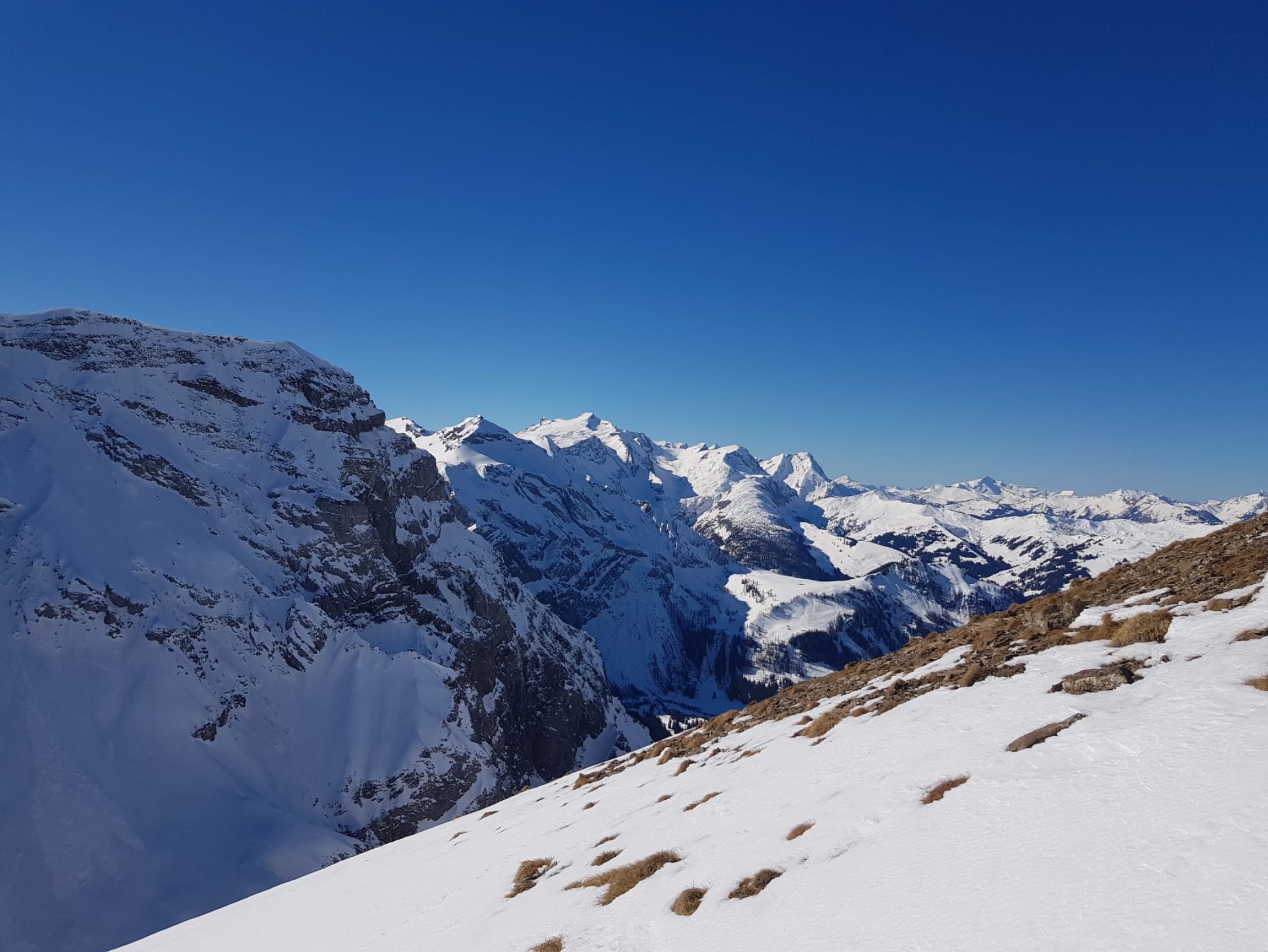 Perfektes Wetter und Aussicht, jedoch wird der Auffahrt auf dem Ammertegrat nicht mehr sehr lange ohne Tragen machbar.
