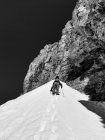 Vereist, gedeckelt und dann bei Abfahrt nass Schnee mit deckel . 3SL bis gipfel gut zum klettern aber Fels ist nicht fest. Empfehle ich von 2 Stand bis unten Abseilen. 1 Stand heikel. Gut gegeben weil wir alleine waren :)