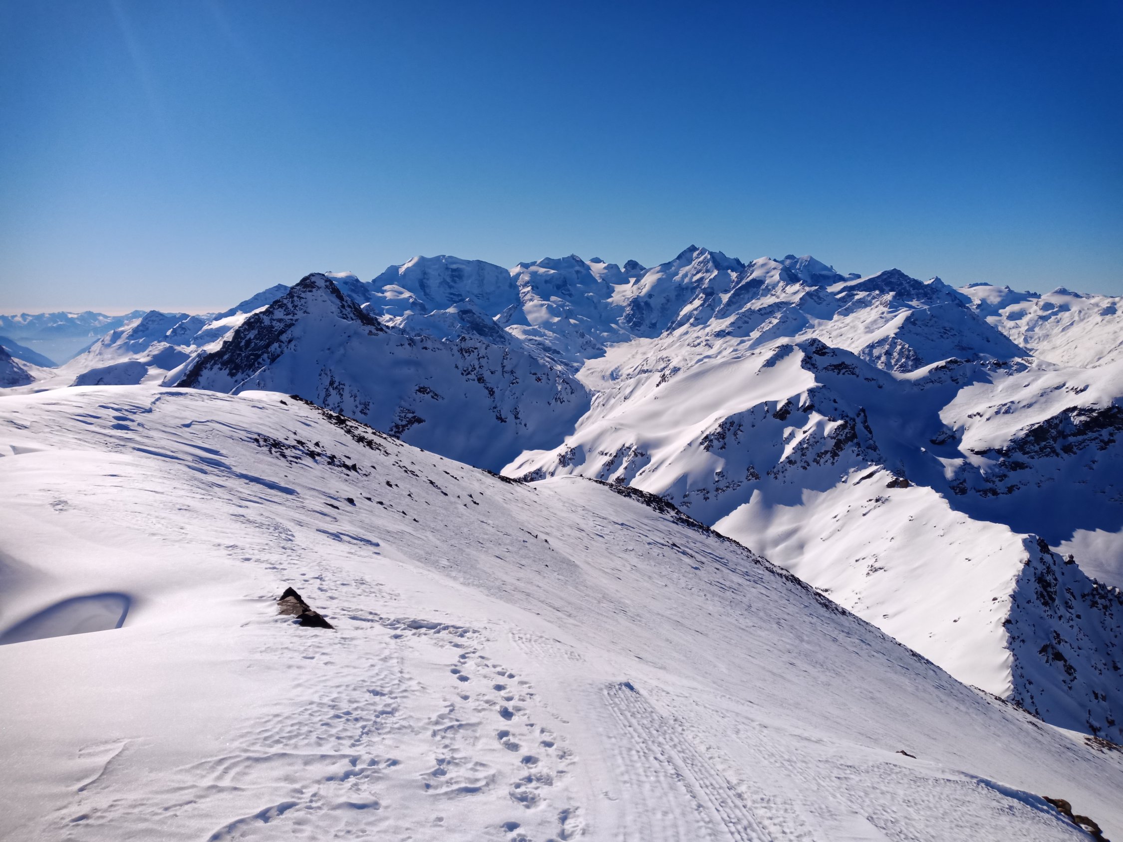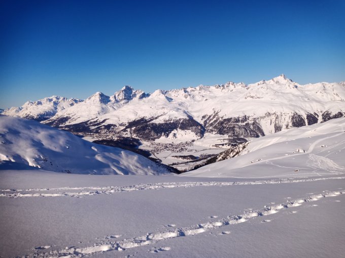 Abfahrt via Fuorcla Muragl und Fuorcla Olivet nach La Punt Chamues-ch.