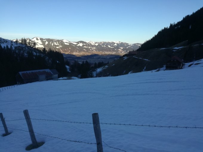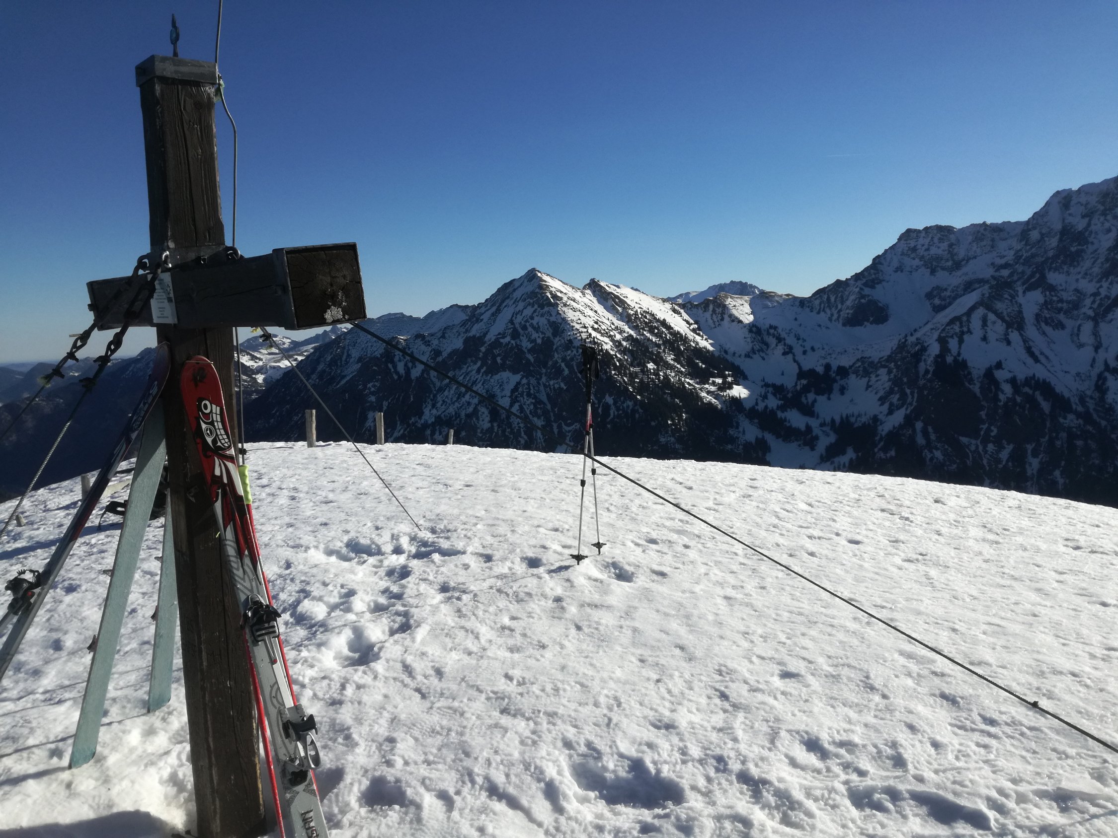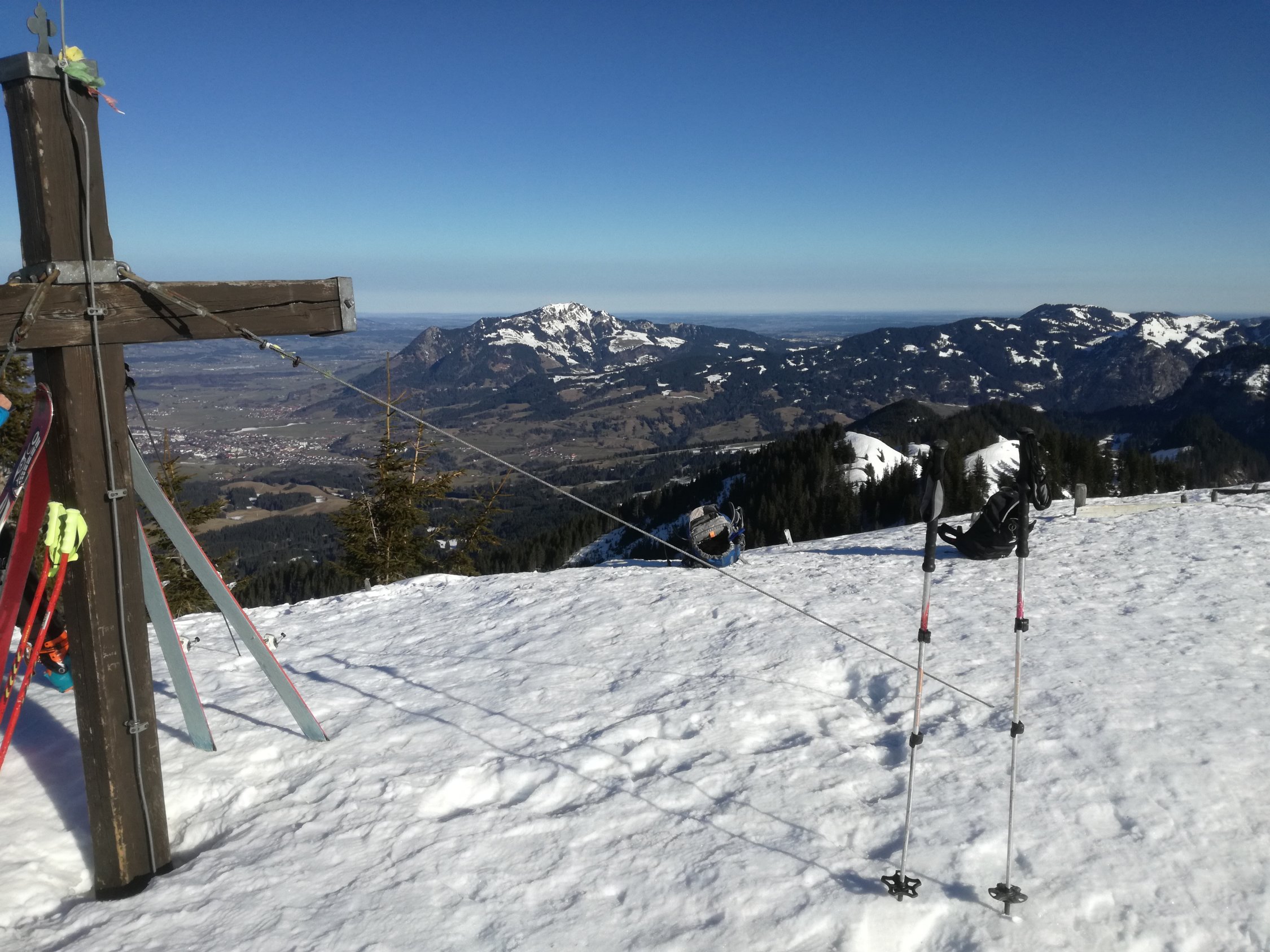 Von Reichenbach über Gaisalpe Vom Parkplatz Gaisalpe über Fahrweg/ Schlittelbahn zur Gaisalpe. weiter über Forstweg zur Rubialpe - Sommerweg durch den Wald zur Falkenalpe und über Südgrat zum Gipfel. Abfahrt zur Falkenalpe und nach kurzem Gegenanstieg dem Grat Richtung Entschenkopf -dann nach West über schönen Skihang bis Rubialpe-Gaisalpe abfahren