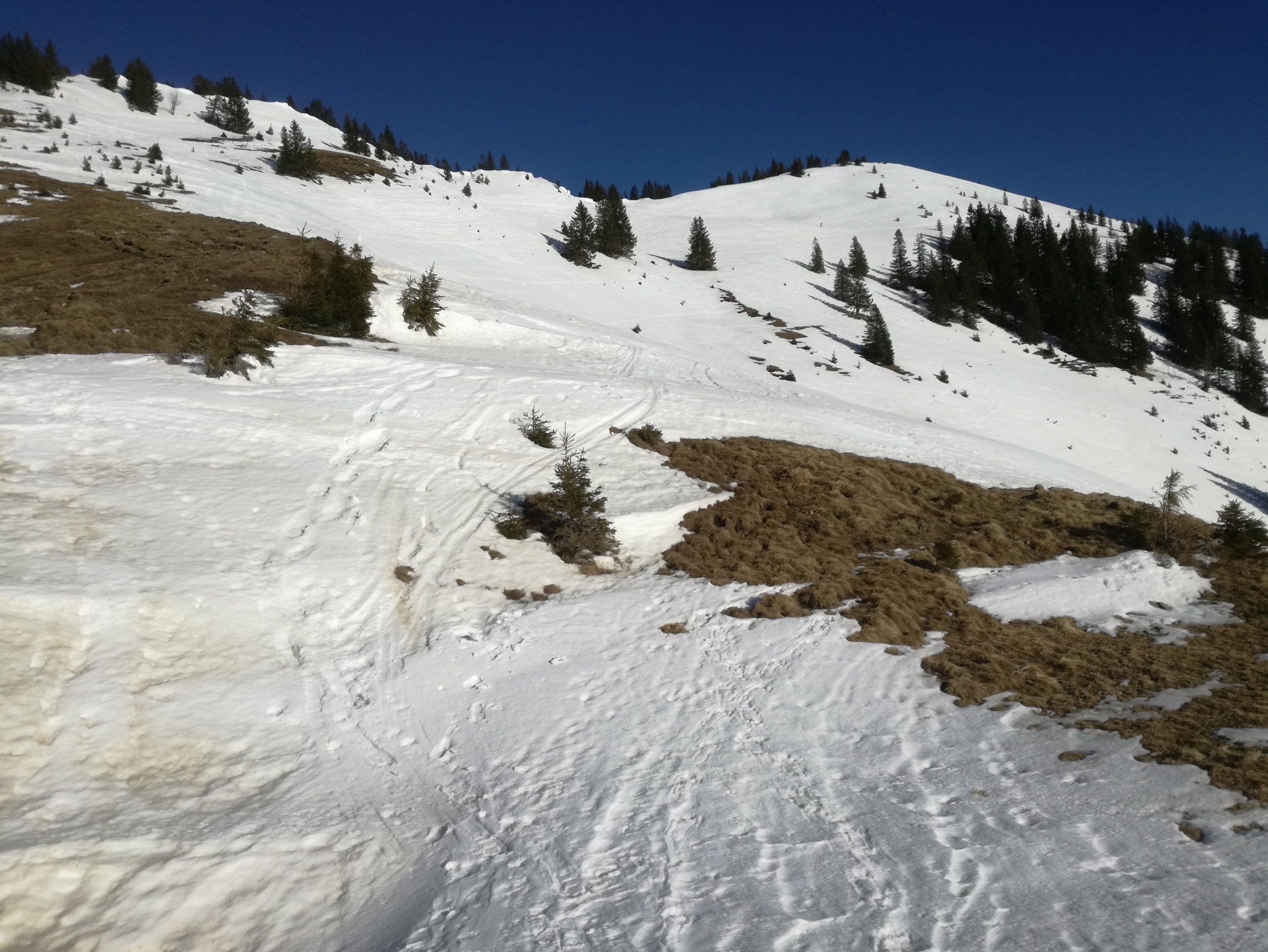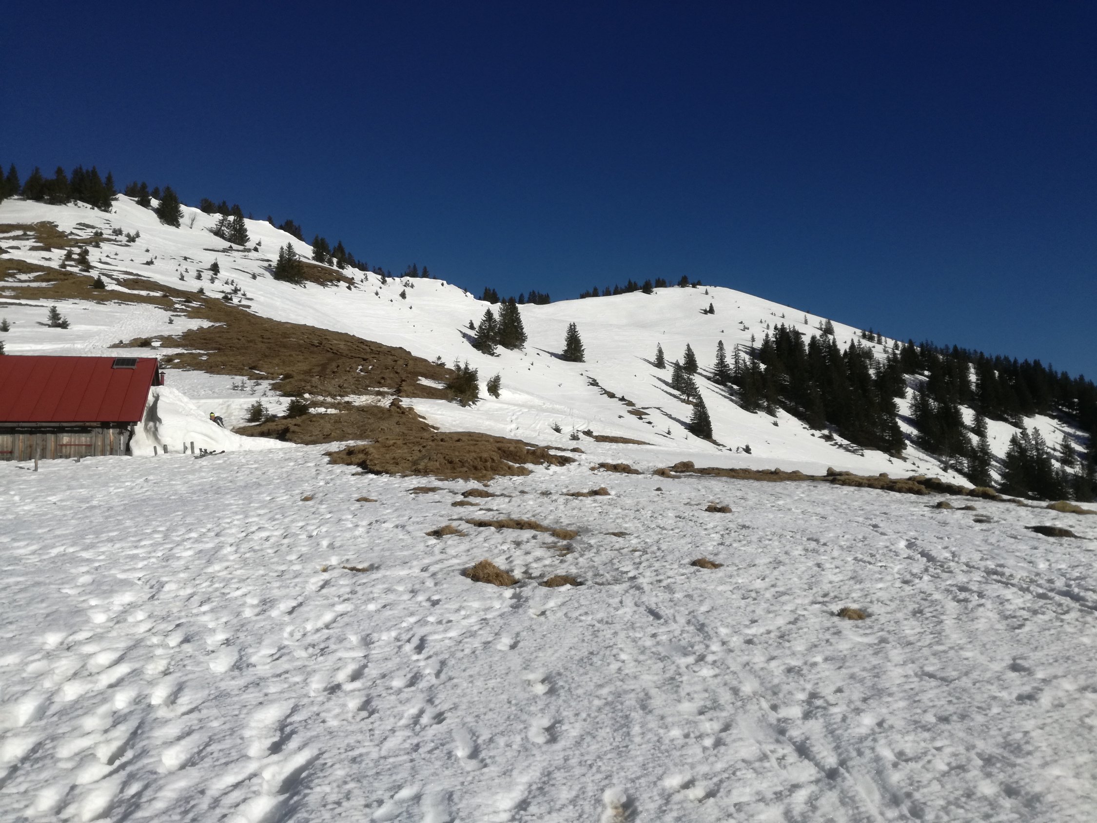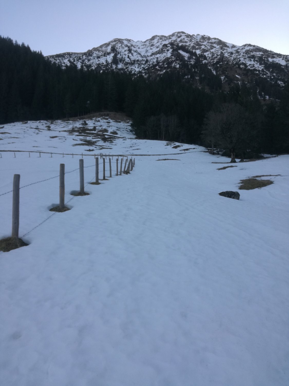 Von Reichenbach über Gaisalpe Vom Parkplatz Gaisalpe über Fahrweg/ Schlittelbahn zur Gaisalpe. weiter über Forstweg zur Rubialpe - Sommerweg durch den Wald zur Falkenalpe und über Südgrat zum Gipfel. Abfahrt zur Falkenalpe und nach kurzem Gegenanstieg dem Grat Richtung Entschenkopf -dann nach West über schönen Skihang bis Rubialpe-Gaisalpe abfahren