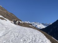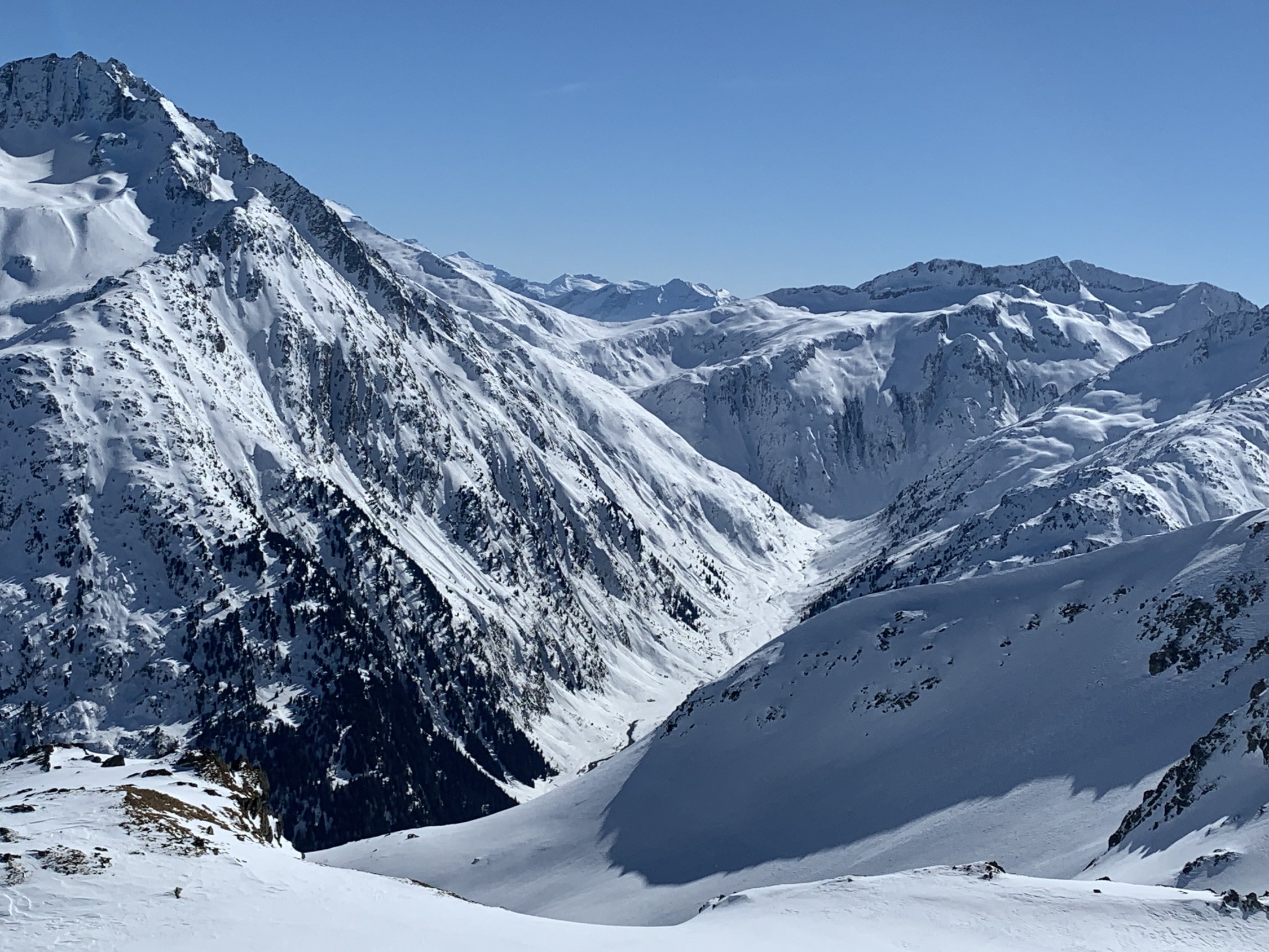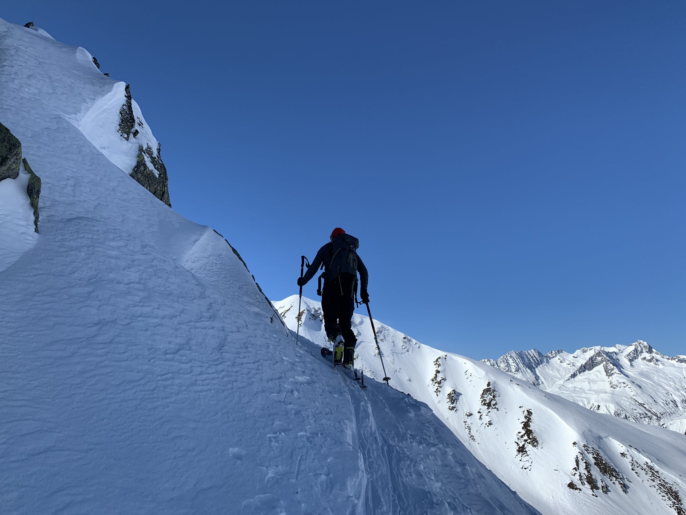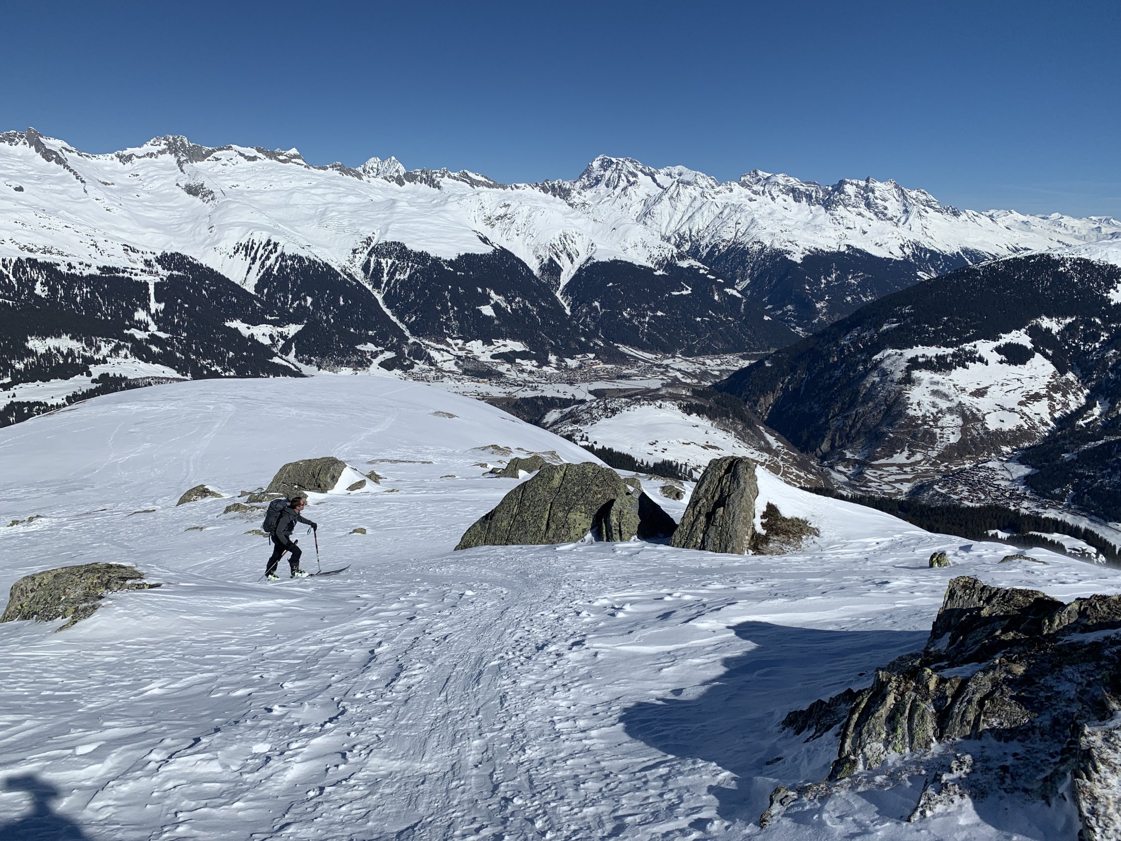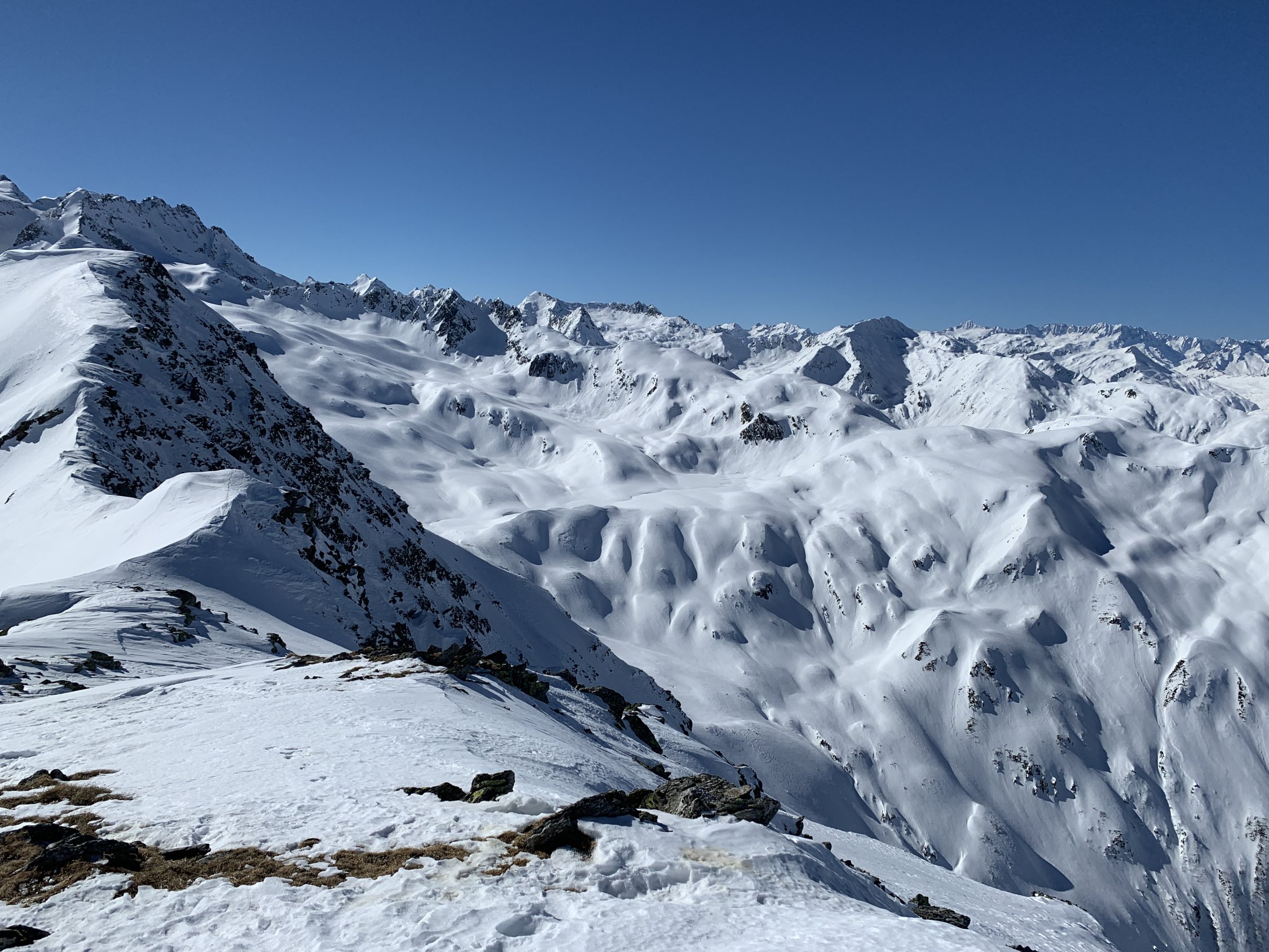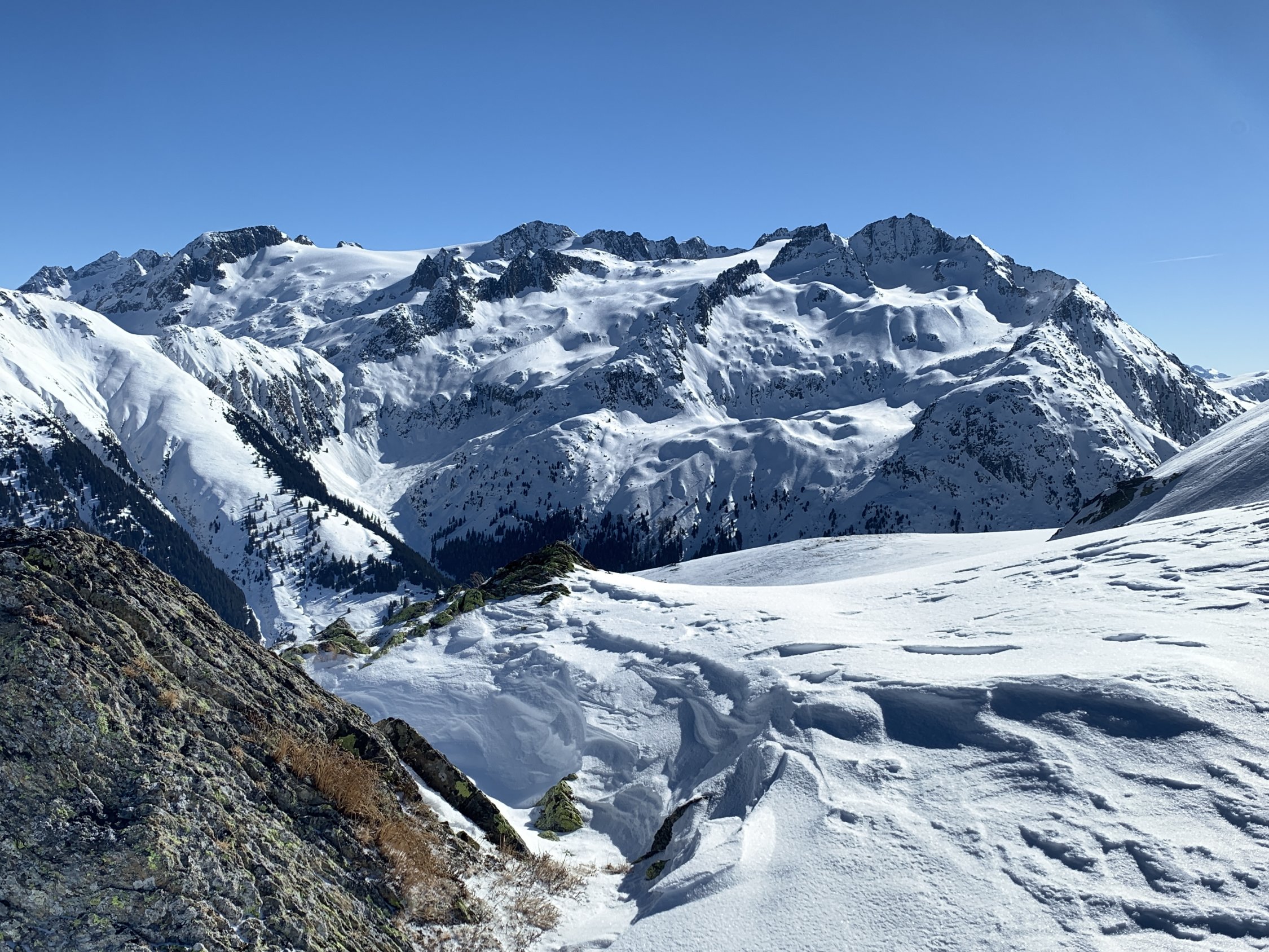 Starker Wind, der den Schnee ein wenig in Mulden verfrachtet. Harscheisen nicht unbedingt notwendig, aber auf den letzten 150m hilfreich, wenn man Kraft sparen möchte. Abfahrt schneetechnisch besser als erwartet, ein Wechsel zwischen Bruchharsch und Pulver. Im unteren Teil ab ca 1600m hat es nett aufgefirnt, und da kann man schön in Sulz bis zum Parkplatz abfahren. Natürlich schon stark zerspurt.