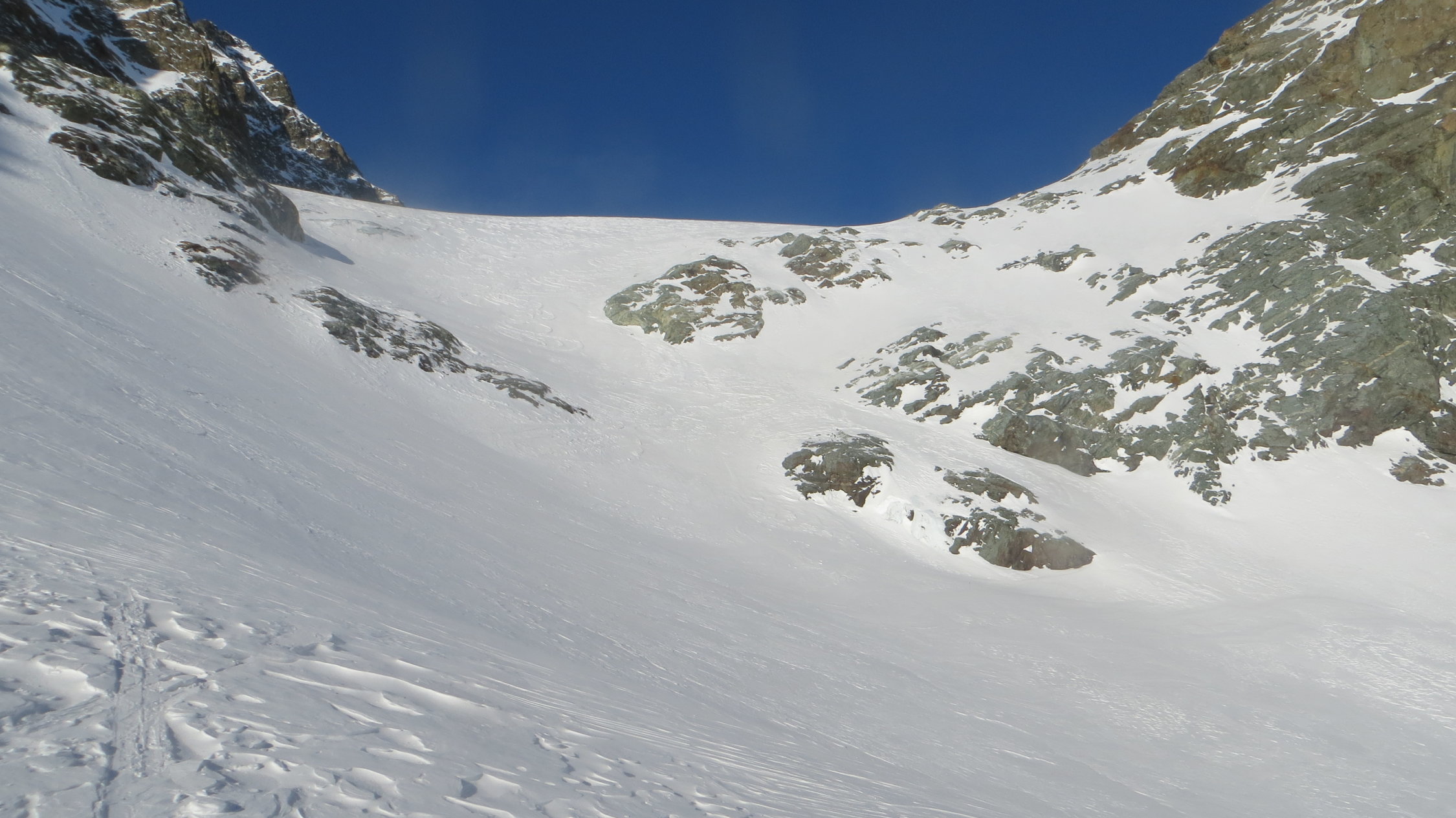 Wir sind morgens um 8 Uhr von der Hütte los. Der erste steilere Aufstieg war schon recht harschig, aber ohne Harscheisen machbar, Im Couloir montierten wir dann doch die Harscheisen. Eine Spur war nicht mehr vorhanden, da der Wind recht stark war. Der Schnee war sehr hart und es war kaum möglich eine Spur zu setzen. Dennoch war der Aufstieg mit Harscheisen sehr gut zu bewältigen. Danach geht es über ein Plateau zu einer Flanke rechts. Wenn man über die Flanke rüber ist sieht man den Piz d'Err. Dort geht man über eine steile Flanke (Brauchten wieder Harscheiden) hoch bis zu einem Fels. Kurz vor dem Fels entscheiden wir uns die Skit abzuziehen und zu Fuss zum Skidepot zu gehen. War einfacher und kraftsparender als mit den Skiern weiter. Vom Skidepot geht man rechts über eine steile Flanke hoch bis in den Sattel und von dort links über ein Felsband bis zum Gipfel.