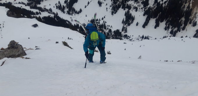 Viel Schnee, ab Giferhüttli Steigeisen kein Nachteil, da oft über gefrorene Gras unterwegs und z.T. verblasene Felsen und Wächten
