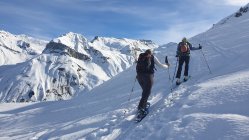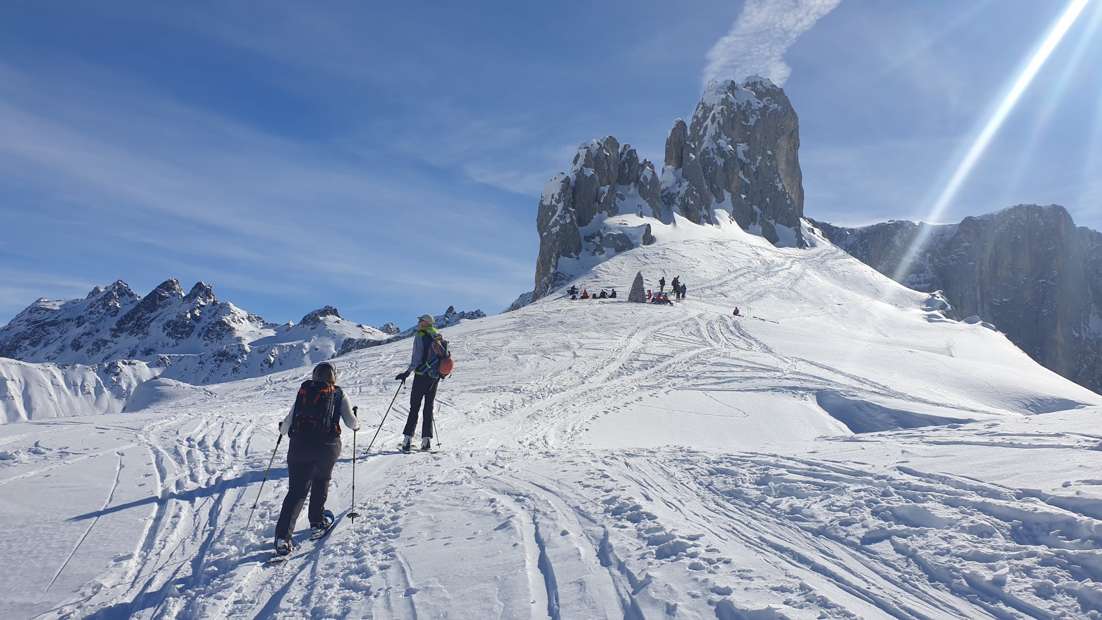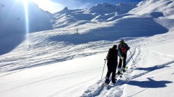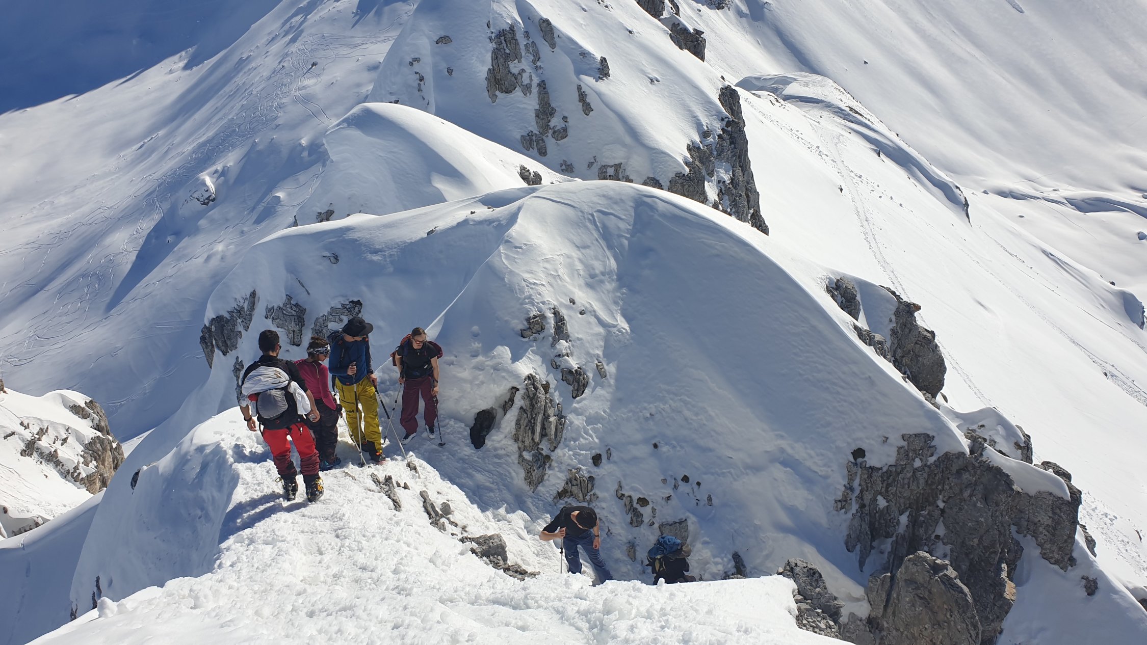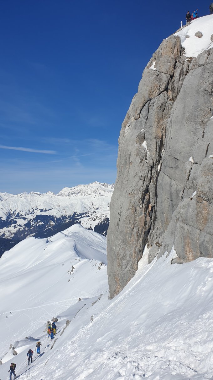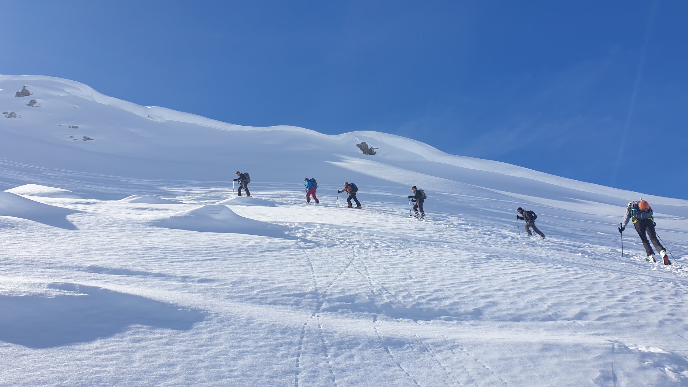 Eine Autobahn führt in angenehmer Steigung zum Skidepot. Aufstieg im Colouir etwas weich aber gute Tritte.