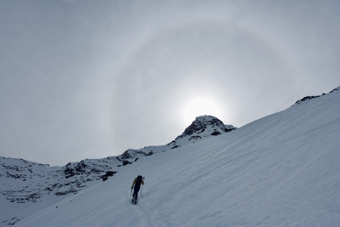 Die Hänge bis zum Einstieg des Nordcouloirs sind je nach Exposition noch wunderbar pulvrig. Wir haben bis zum Einstieg des Canale auf 2830m gespurt. Dort hatte es doch noch einiges an Triebschnee, sodass wir den Canale nicht hochgespurt haben. Auf dem Grat waren weitere Tourengänger auszumachen, welche wohl vom Fedoz hichgekommen waren. Wir sind weiter auf sie Margneta mit einer wunderbaren Abfahrt zurück in den Kessel. Erst im unteren Teil auf dem Plan di Cavai etwas kartonartiger Schnee.