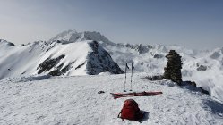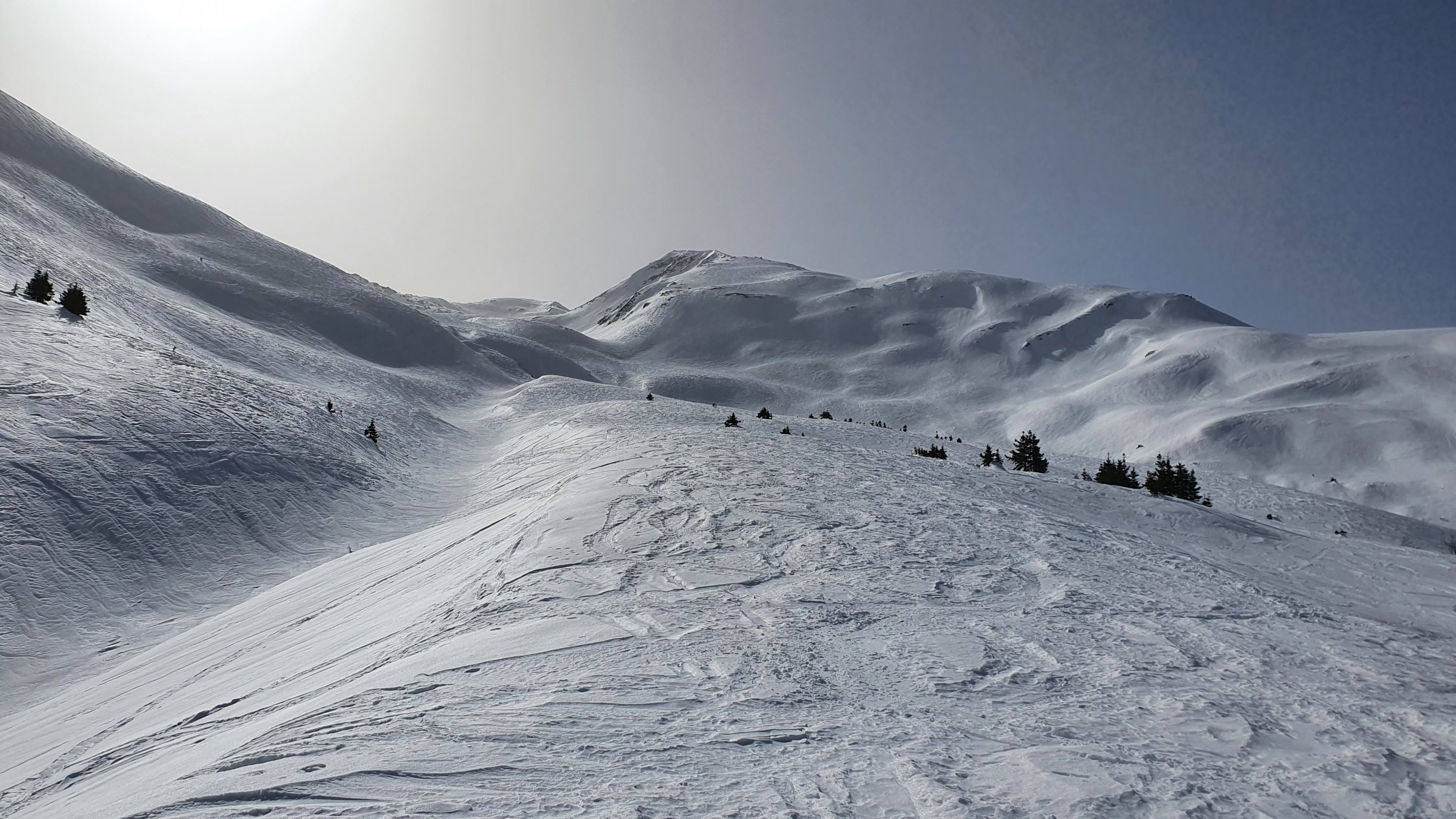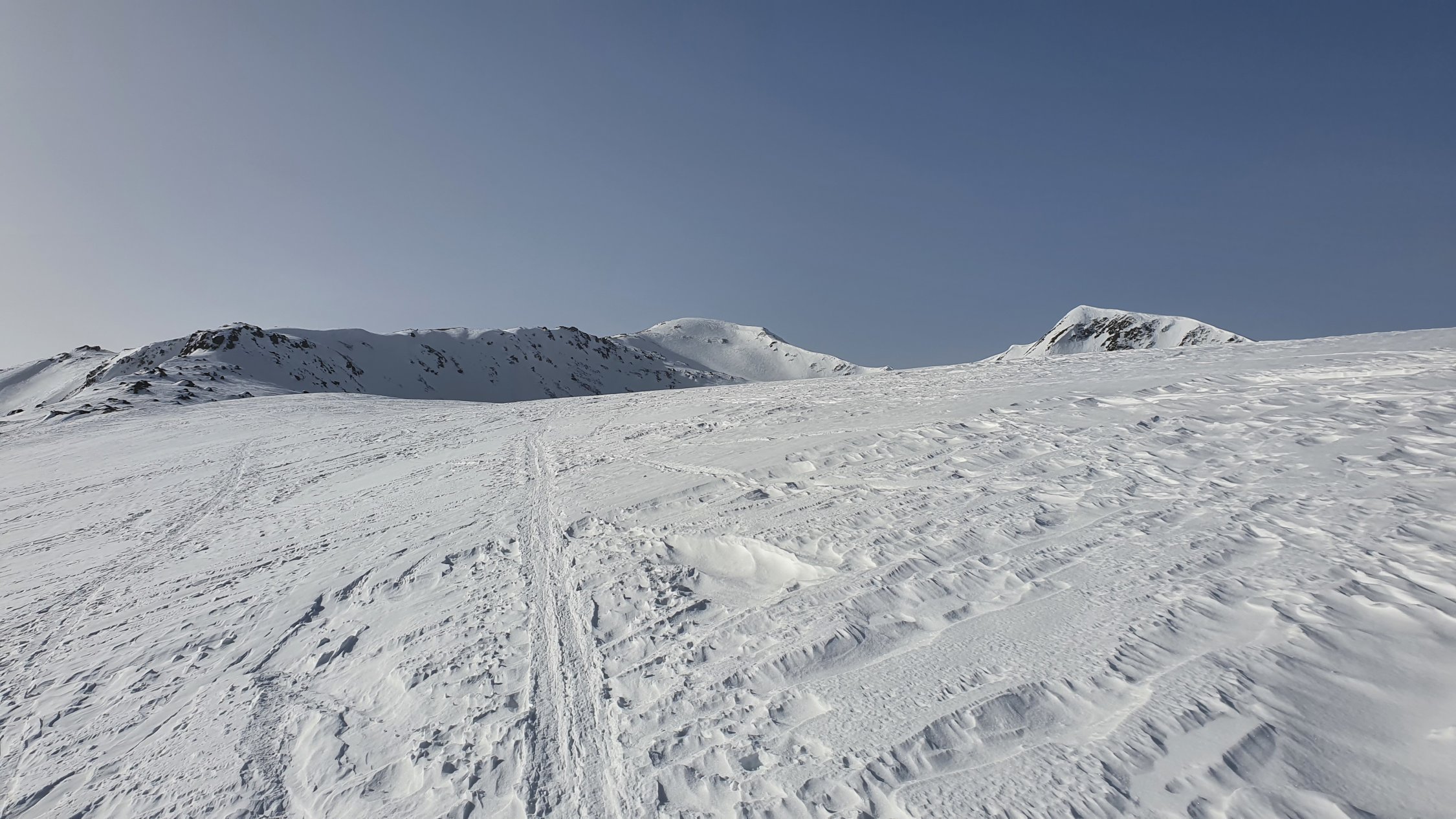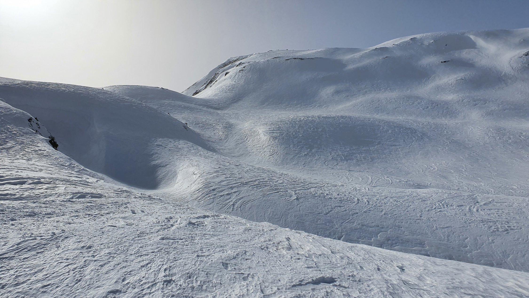 Am morgen um 8:00 waren Harscheisen im schattigen Aufstieg vorteilhaft. Im oberen Bereich auf hartgepresster Unterlage gings ganz gut ohne. Abfahrt um 12:00 vom Gipfel Rtg. Alp Pazzola, im Schatten auf griffigem Hartschnee, bei Sonneneinstrahlung leicht aufgeweicht, Schlusshang zum PP Plaun Pali schöner Sulzschnee.
