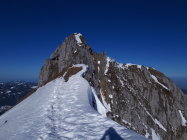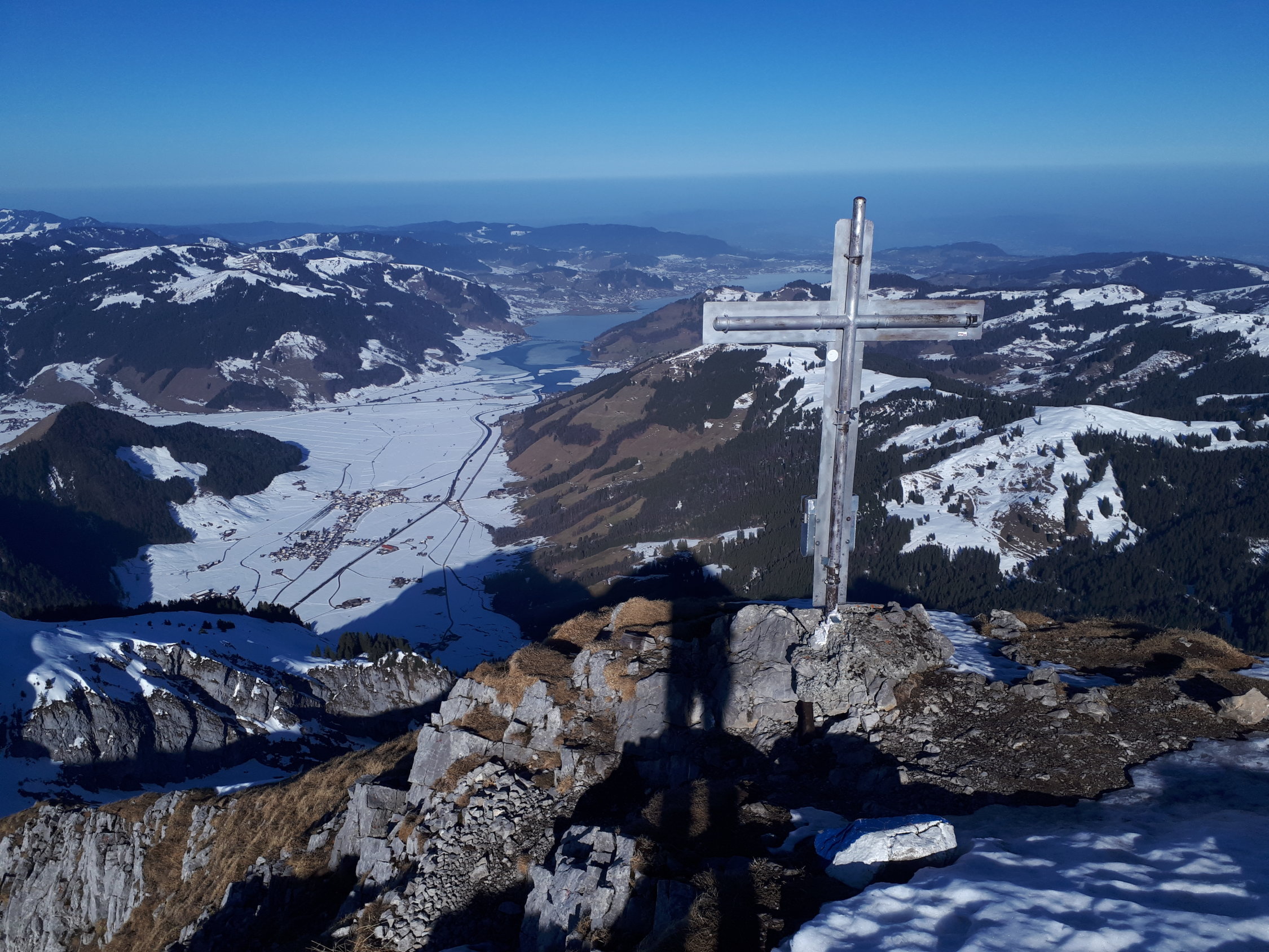 Start um 7.00 bei +3 Grad. Im Wald hat es bereits einige tragstellen. Oberhalb vom Wald war der Schnee tragfähig gefroren. Ketten beim Gipfel sind Schneefrei.
