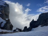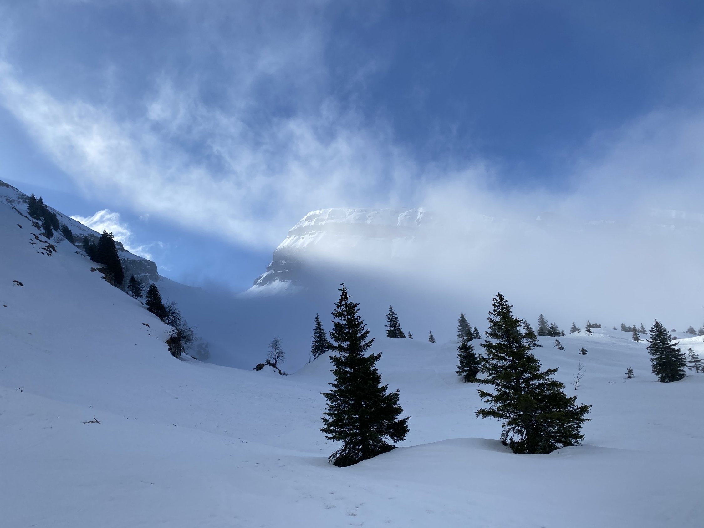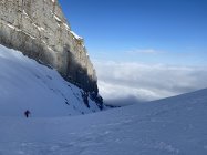 Im Aufstieg hart aber griffig (Start um 6.30 Uhr). Steilpassage vor der Gluristalscharte ohne Harscheisen machbar. In der Abfahrt bis Selamatt hart, tragend. Ab Selamatt Sulzschnee.