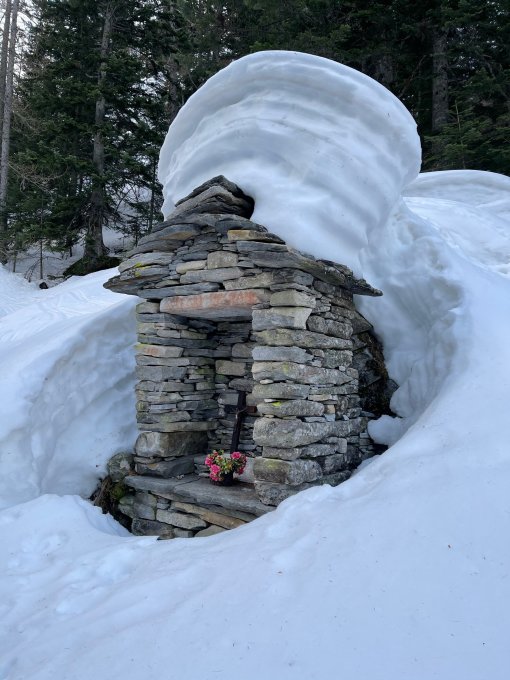 Im Talboden auf der rechten Talseite in bequemer Spur, ohne viel zu stossen bis zur Balm da la Rossa, wo man den Fluss quert. Dann empfiehlt es sich wieder anzufellen um die letzten 50 Hm bis zur Strasse zu bewältigen.