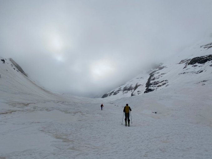 Bei Sunnbüel im Nieselregen gestartet, waren uns nicht sicher, ob das was wird. Danach Nebel bis kurz vor dem Abzweig zum Zackengrat, dann aber Sonne pur. Im unteren Teil gefrorener Sulz, sonst überwiegend stark gepresster Schnee in der Gipfelflanke z.T. ganz dünne Eiskruste. Ab Flanke zum Zackengrat Harscheisen montiert, waren auch notwendig. Der Zackengrat kann durchgehend gut mit Skiern begangen werden inklusive dem Übergang Zackengrat-Gipfelflanke. Die letzten Meter zum Vorgipfel in Steigeisen gegangen. Dort war auch Schluss, weil Wolken reindrückten und wir bei Sicht abfahren wollten. Westflanke sehr harter Firn, teilweise mit Windgangeln durchsetzt. Nicht sehr angenehm abzufahren unten dann über festgefrorene Lawinenkegel. Wir hatten gehofft, dass das alles aufsulzt gegen Mittag, hat es aber leider nicht obwohl wir schon relativ spät dran waren