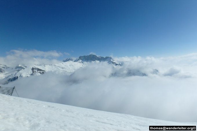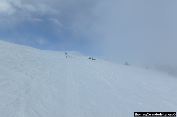 Da es heute Wolken / Nebel hatte, waren die Verhältnisse gut und erst am späten Nachmittag wurde der Schnee sulzig.