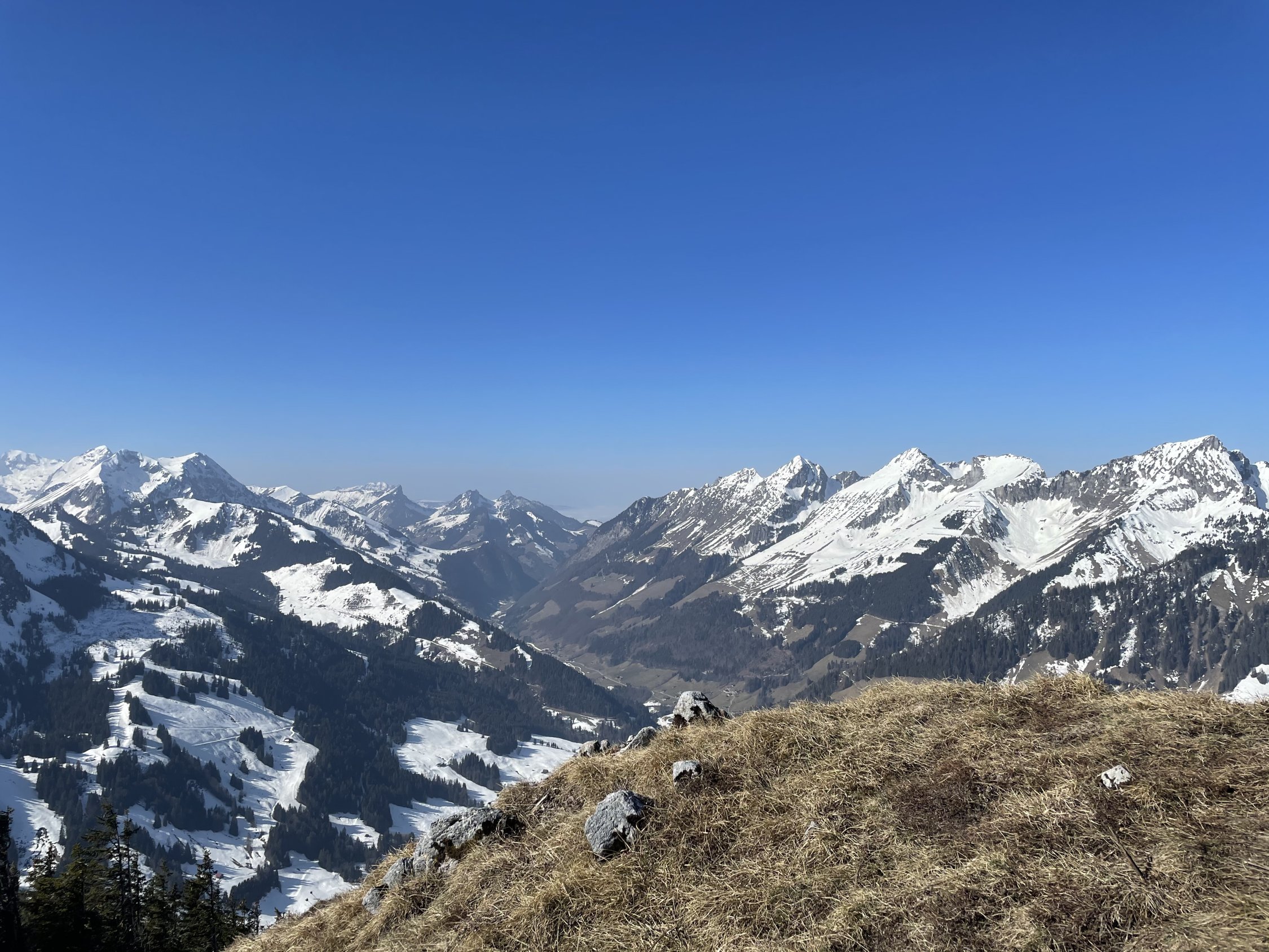 Im Simmental ist bereits sehr Frühling. Touren auf Fromattgrat und Gestelegrat bereits mit deutlichen Tragestrecken. Ab 1500 MüM geschlossene Schneedecke, aber bei der Besonnung wird das rasch Lücken geben. Neuschnee wäre erwünscht, aber nicht in Sicht.