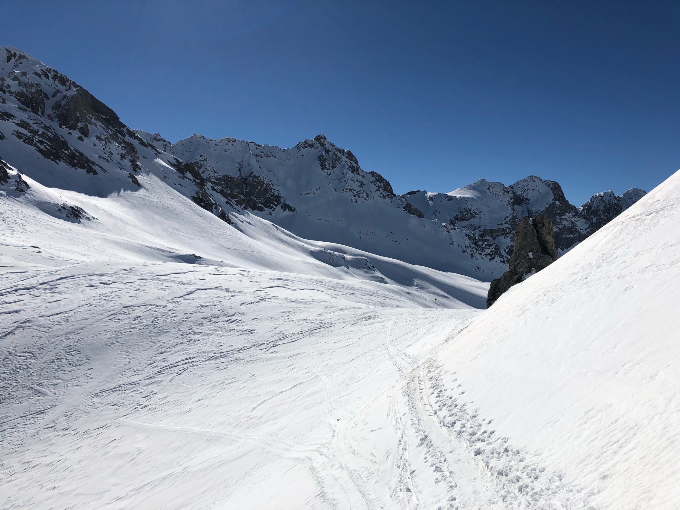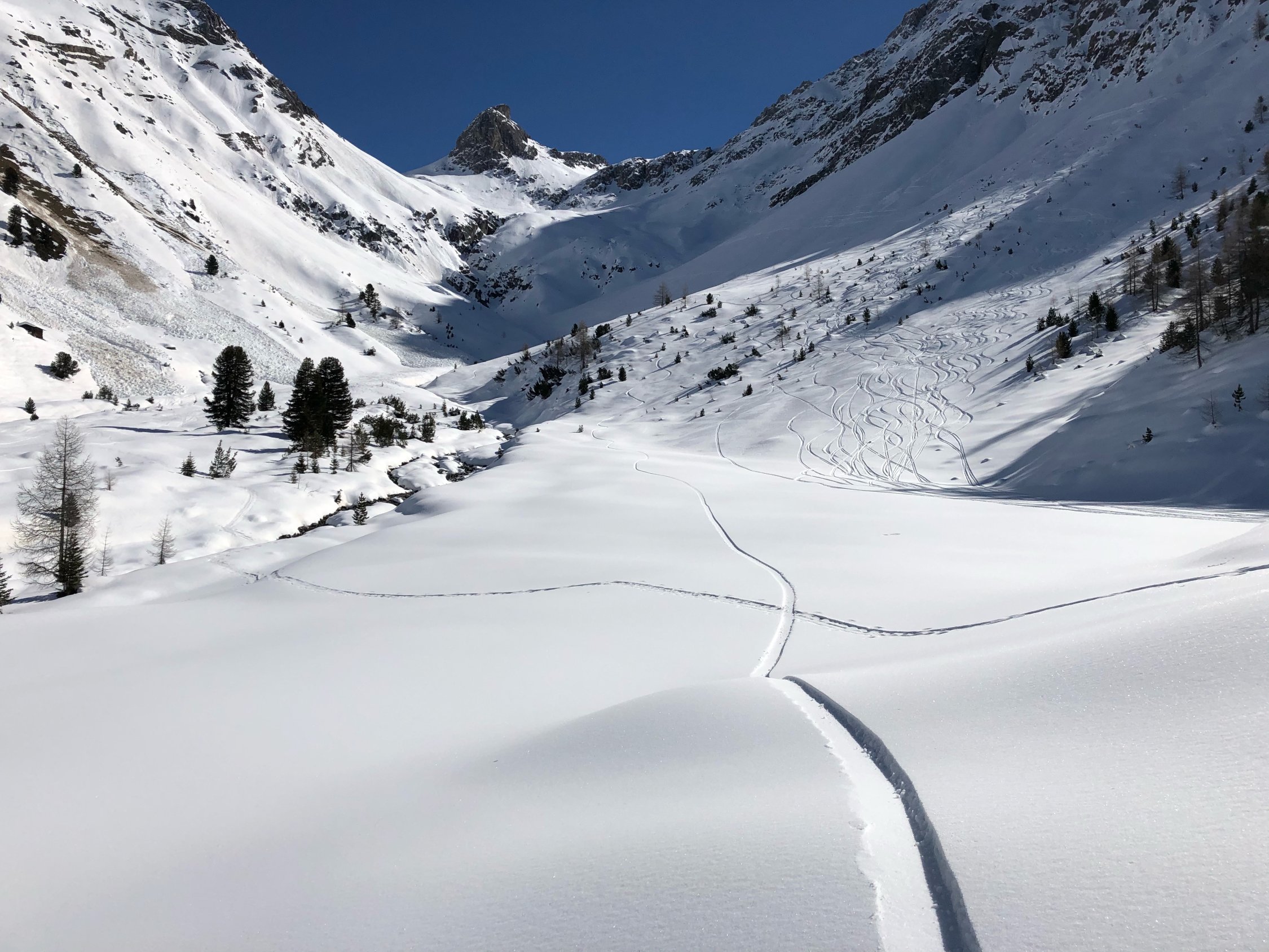 Aufstieg bis Fanezfurgga einfach und gut gespurt. Die Traversen zur Ducanfurgga und weiter zum Chrummhüreli waren um 11 Uhr noch hart; mit dem Splitboard brauchte ich Harscheisen. Die Abfahrt bot oben noch Pulver; teilweise unter einer dünnen Kruste; teilweise harter Firn (gegen Mittag). Das ganze Gebiet Mäschenboden/Inneralp ist völlig zerfahren, aber in der Mittagszeit noch nicht aufgesulzt; ebenso der undankbare Waldweg zurück nach Monstein.