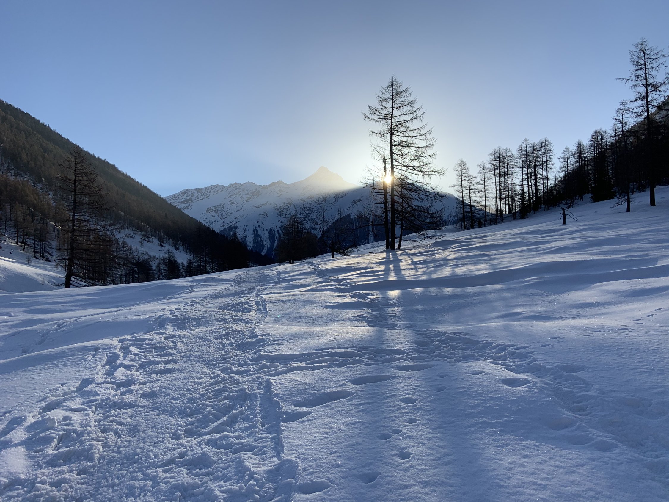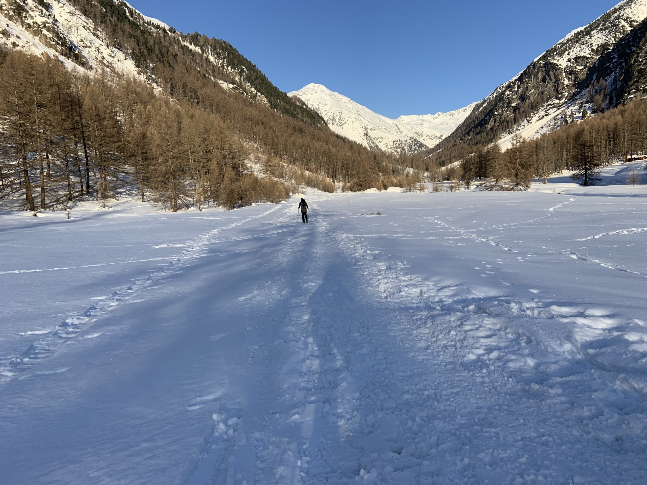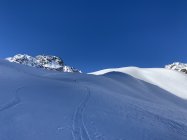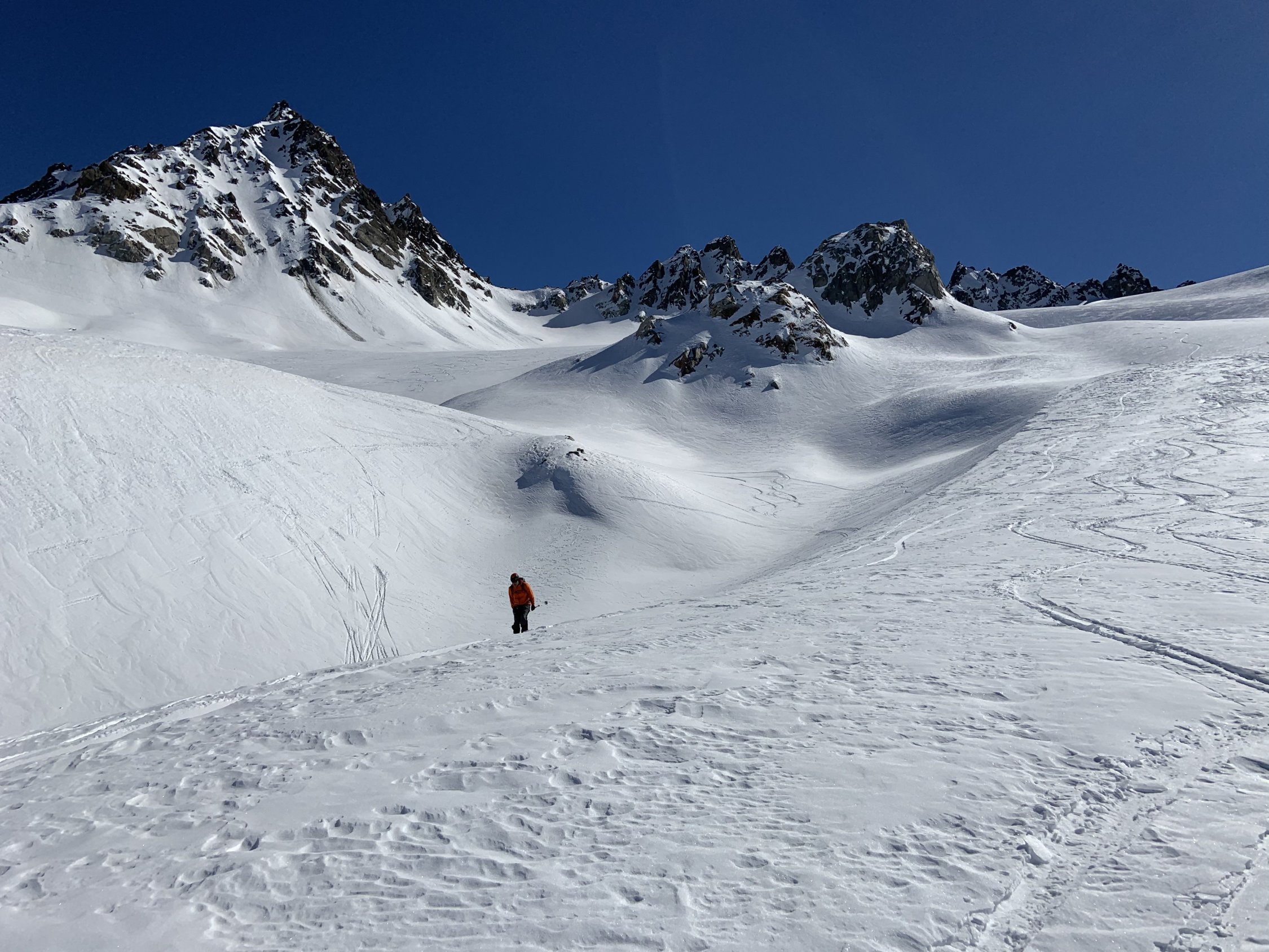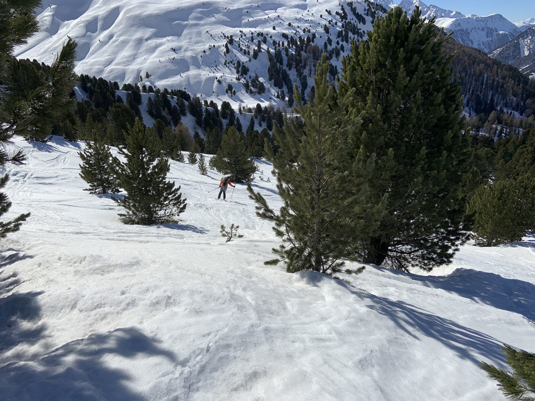 Sind in Cinuos-chel gestartet. Teilweise mussten wir durch Presspulver spuren. Dann direkt durch die Südflanke bis 20 m unter den Gipfel, den Rest zu Fuss
