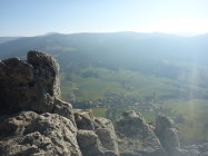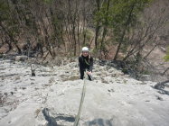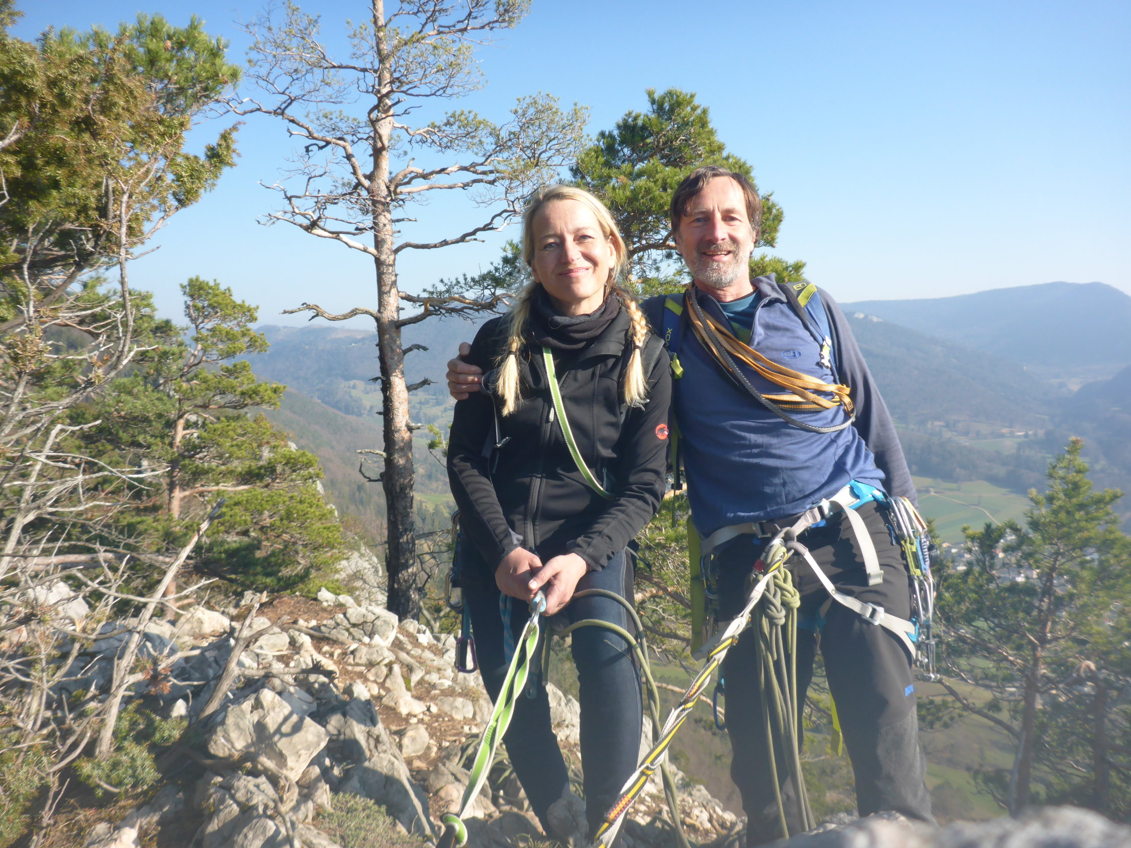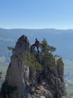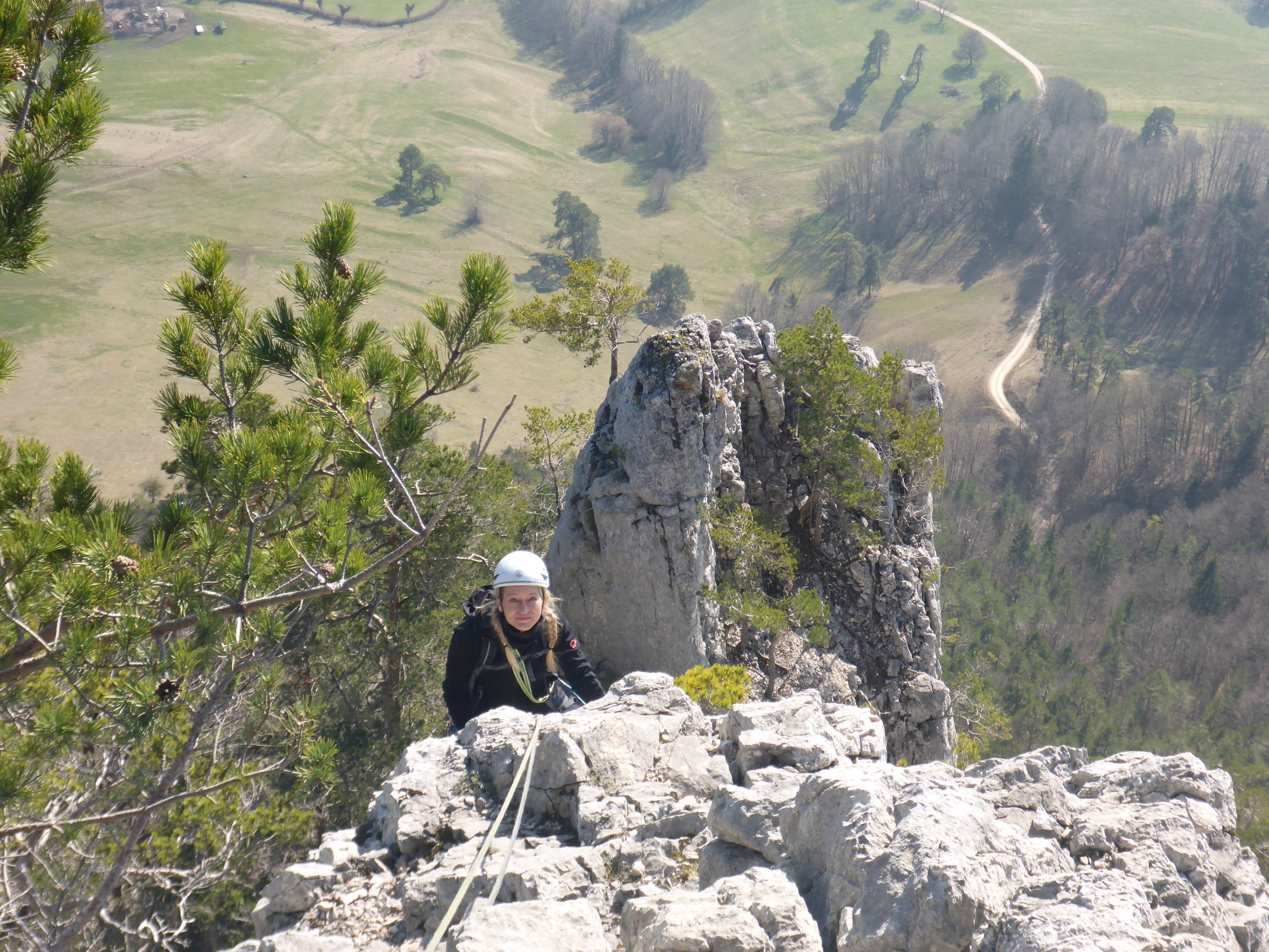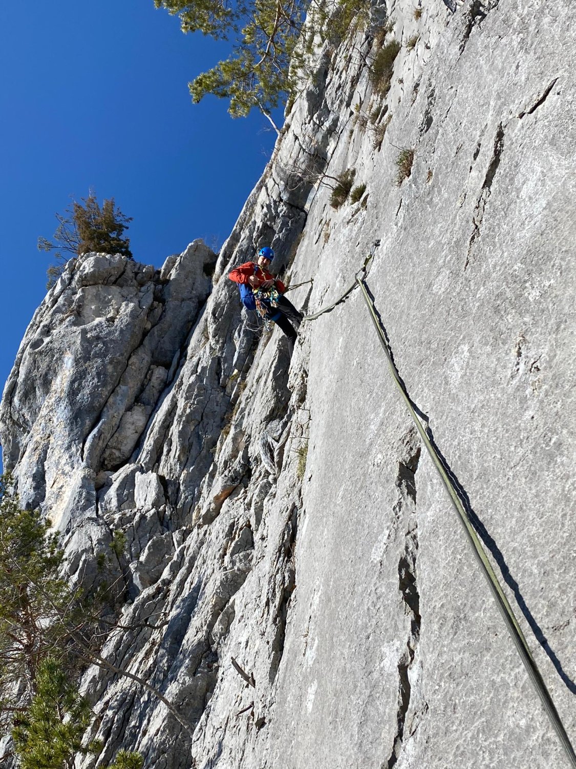 Parkplatz oberhalb Grandval zum Gipfel, über Wanderweg zurück 4a, 5a, 5a, 5c+ (für diese SL mit einem kleinen Überhang gibt es auch einfachere Varianten (4b+, 5a oder 5c), 4c+, 5a, 4a.