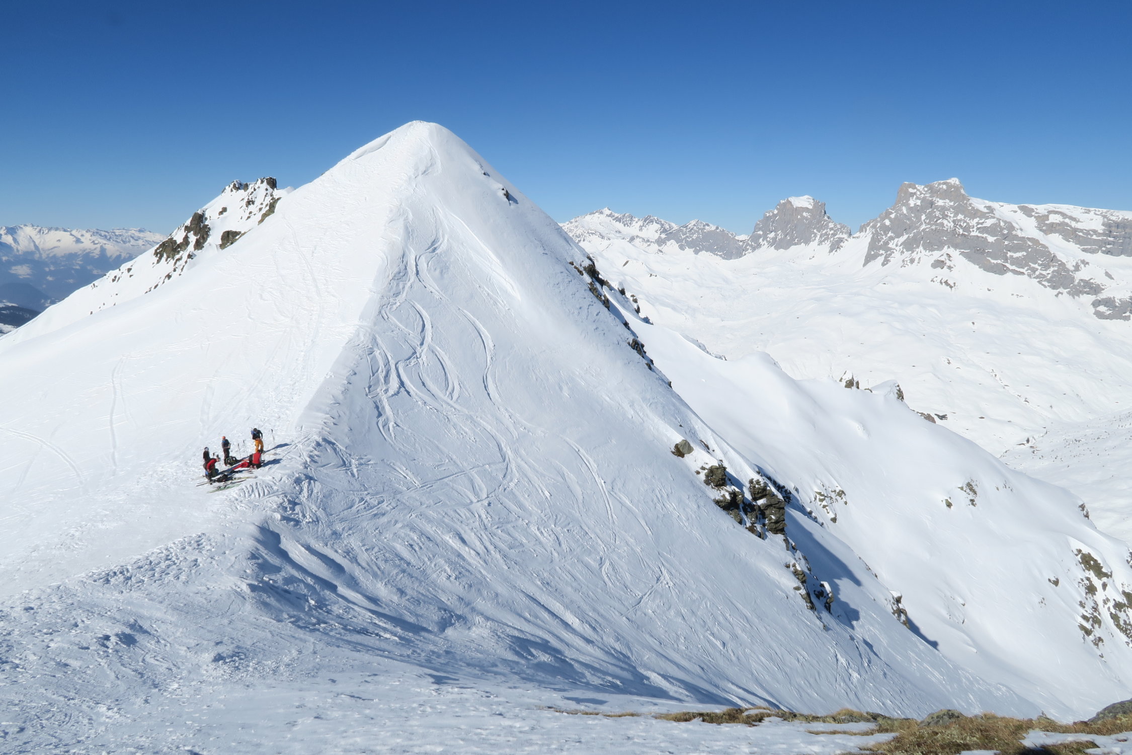 Tolles Tourenwetter. Dank nächtlicher Abstrahlung am Morgen harte Kruste. Im Aufstieg im Alpeltitälli haben wir uns rechts gehalten, um den Lawinenkegel zu umgehen. Heute war reger Betrieb am Riedchopf, deshalb haben wir den Gipfel ausgelassen. Die steile Abfahrt von der Riedchopf-Furgga in Tälli war wie eine Piste: griffiger und fester Schnee. Der Gipfelaufbau des Rotspitz war am Mittag erfreulicherweise schön aufgesulzt. Bei der Abfahrt nach Partnun fanden wir verschiedenste Schneearten: Hartschnee, Sulz, einige Stellen mit Pulver. Ab Partnun lag bester Sulzschnee.