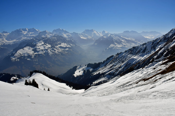 Es war etwas dunstig, aber da das Panorama meines Hausberges mir bestens bekannt ist, war dies kein Problem, oder, so wie Paul Nigg, wo ich mein erster Tourenski-Kurs absolviert habe, immer sagte: "Jeden Tag ist wieder anders und daher ein neues Vergnügen". Er meinte damit, die Berge bieten immer wieder neue Überraschungen, auch wenn man schon viele Malen am gleichen Gipfel gewesen ist. Heute war wieder do einen Tag, der wieder besonderes war.
