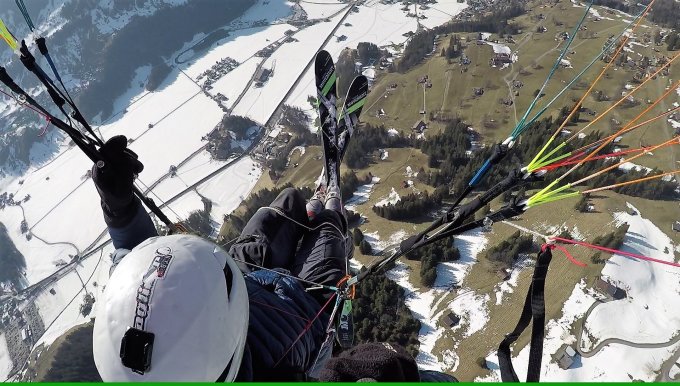 Habe die Abfahrt nach Lenk bald mit dem Gleitschirm verlassen. Super-Thermik beim Hannenmoosspass, Landung beim Bahnhof.