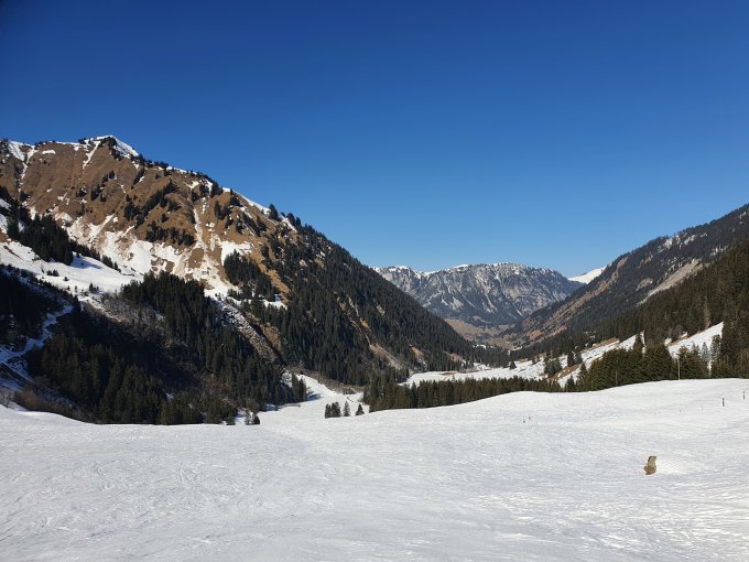 Ich will nicht klagen, aber für ein ausgezeichnet reicht es m.E. nicht. Ohne Zweifel gut oder maximal sehr gut. Für ein ausgezeichnet ist die Abfahrt m.E. durch unzählige alter Spuren und Lawinenzüge zu ruppig. Zudem ist der Gipfelhang auf den letzten 100Hm durch mittlerweile nicht mehr viel Schnee ein rechtes Gemurkse. Aber insgesamt sicher lohnend. Schnee ab Fildrich PP (6.-) genügend vorhanden, wird noch einige Tage (Wochen?) reichen. Waldweg bei Pkt. 1557 gut machbar, Umweg über Pkt. 1664 noch einfacher.