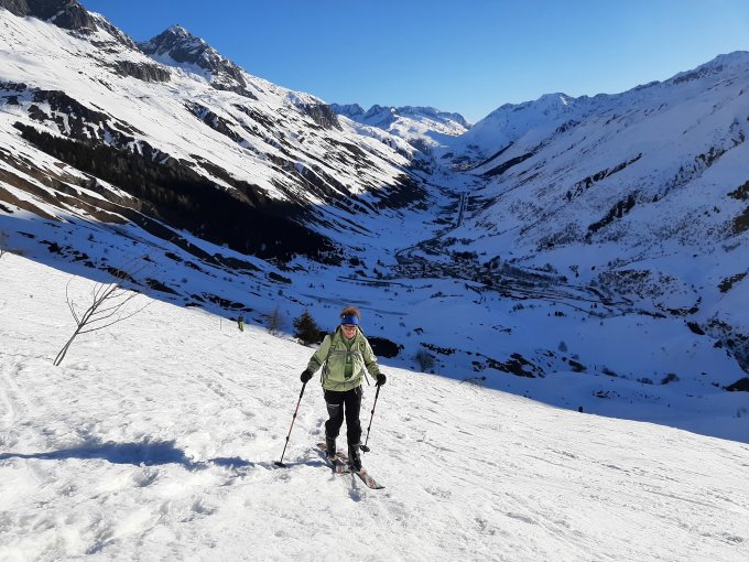 Normaler Aufstieg ab Realp. Es war eher frisch mit -7° C, und nach dem Verlassen der Furka-Passstrasse haben wir die Harscheisen montiert - das hat ein entspannteres Aufsteigen ermöglicht. Nach Hotel Galenstock weiter über die sehr stark verfahrenen (und mit tiefen Schneeschuhlöchern gezeichneten) Hänge hinauf nach Tätsch. Die etwas steil abfallende Passage war heute mühelos passierbar. Nach einer längeren Pause sind wir um ca. 12 Uhr abgefahren. Oben hart, verspurt unten z.Teil sehr schöne "Sulzhänge".