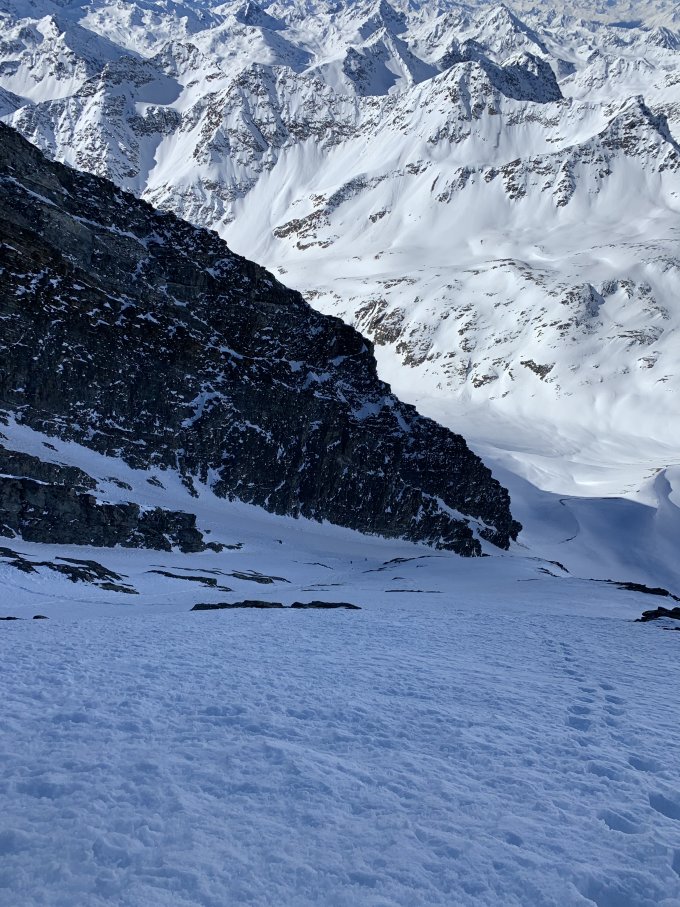 Ohne Neuschnee werden die Verhältnisse im Couloir rasch schlechter. Die nächsten zwei schönen Tage lohnt die Tour aber definitiv noch. Ich habe in der Abfahrt weitere Tourengänger unterhalb des Couloirfusses getroffen, die mir versicherten, sie könnten das Couloir fahren. Vllt. gibt es ja posts dazu...