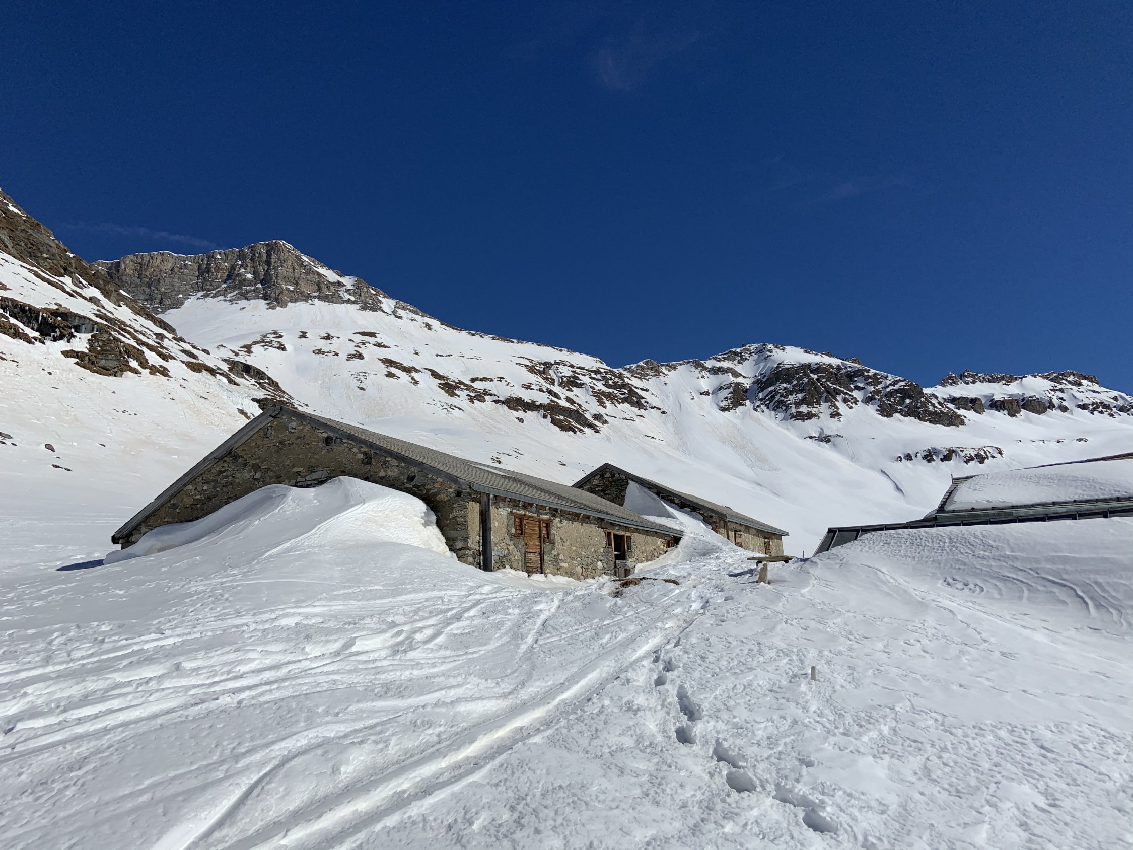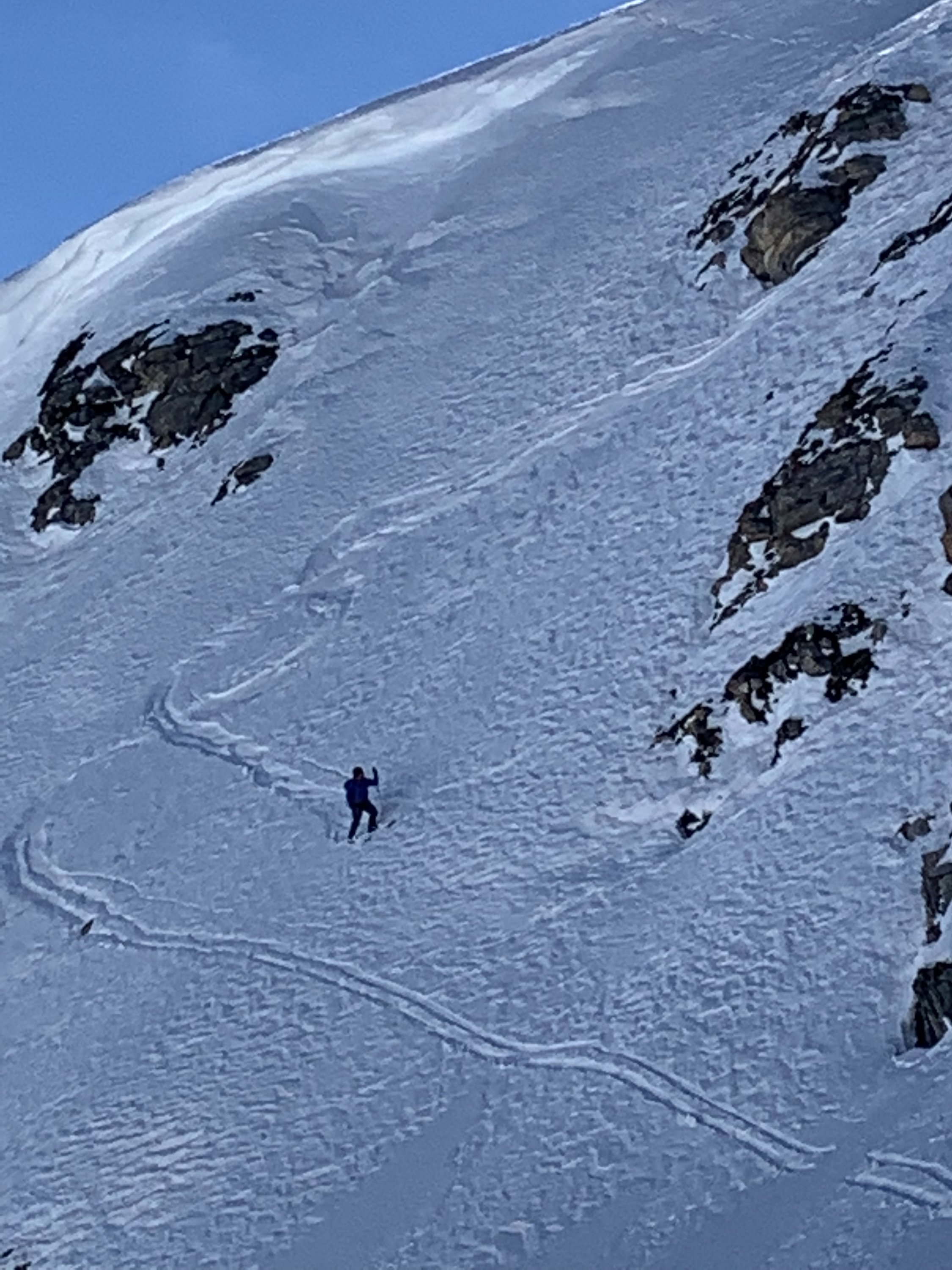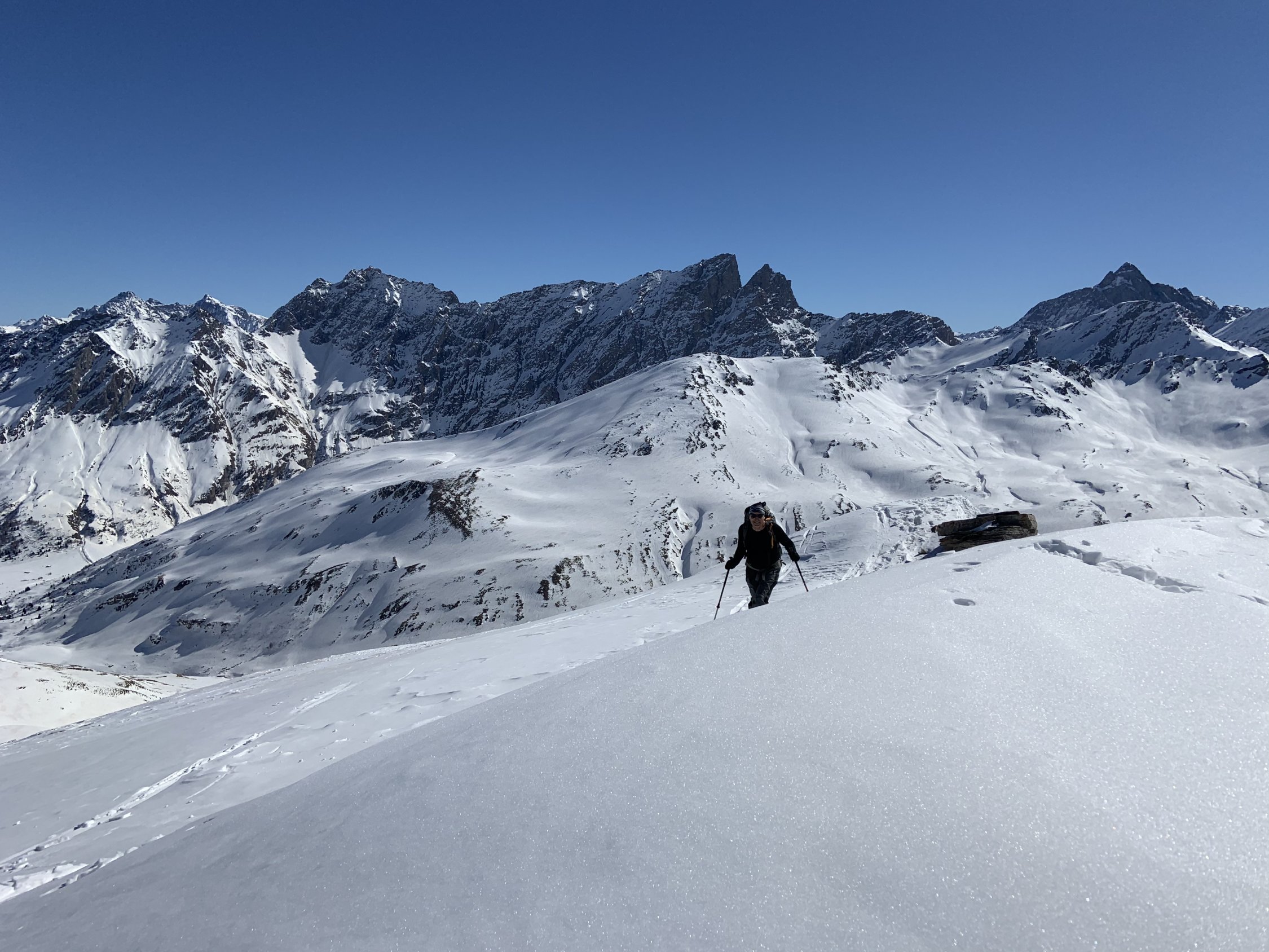 Aufstieg bis auf Gipfel ohne Harscheisen möglich. Abfahrt in steiler Nordostflanke mit Presspulver, an den Südhängen schöner Sulz, Rest etwas ruppig