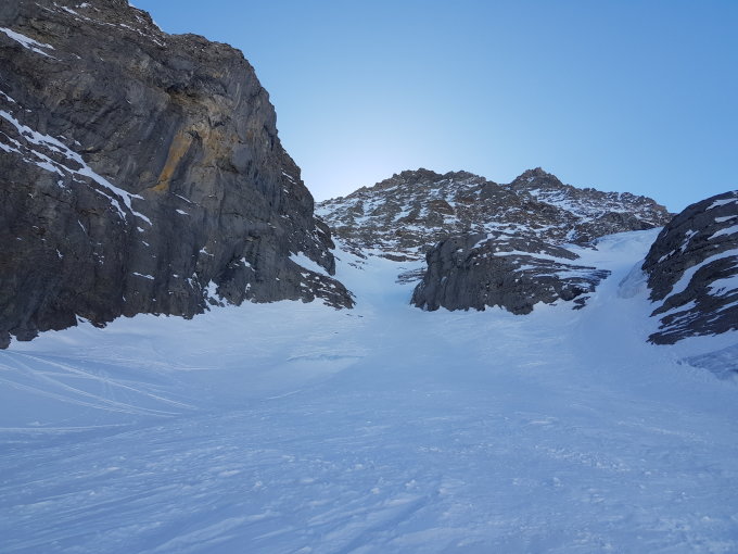 Start um 05:30 Uhr in Rosenlaui. Drei weitere Seilschaften sind bereits früher gestartet. Die erste Steilpassage nach der Gletscherschlucht und die Traverse bis Hindrem Gletscherhubel sind mühsam zu begehen (eisig und einige Lawinenkegel), hier leisteten uns die Harscheisen gute Dienste. Anschliessend mehrheitlichst sehr gute Verhältnisse. Im Couloir vor dem Rosenlauibiwak angenehmer Trittschnee, ansonsten kann gut und zügig alles mit den Skiern bis zum Skidepot im Wettersattel aufgestiegen werden. Der Gletscher ist gut eingeschneit und bereitet keine Probleme. Vom Wettersattel mit den Steigeisen bei super Trittschne und ohne Steinkontakt bis auf den Gipfel (11:00 Uhr).