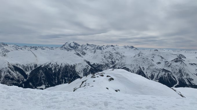 "gut machbar" wäre ganz richtig. Durchgepflügte Hänge, harte Oberfläche von oben bis ca. 2200 m. Schnee hat es noch genug. Weil die Sonne heute hinter den saharastaubvollen Wolken geblieben ist, war (wie erwartet) eine harte Angelegenheit. Dafür schön ruhig... und mit dem bekannten erhabenen Blick auf dem Ortler.