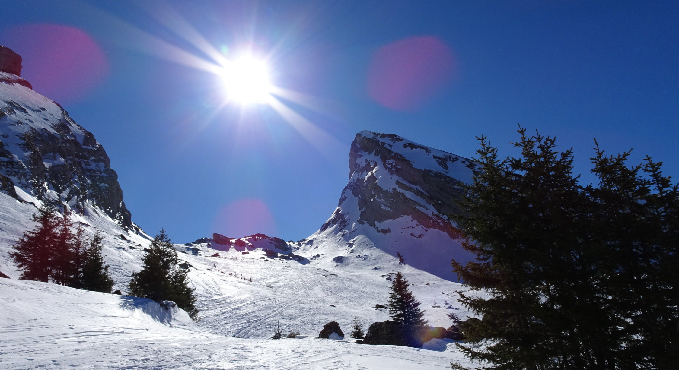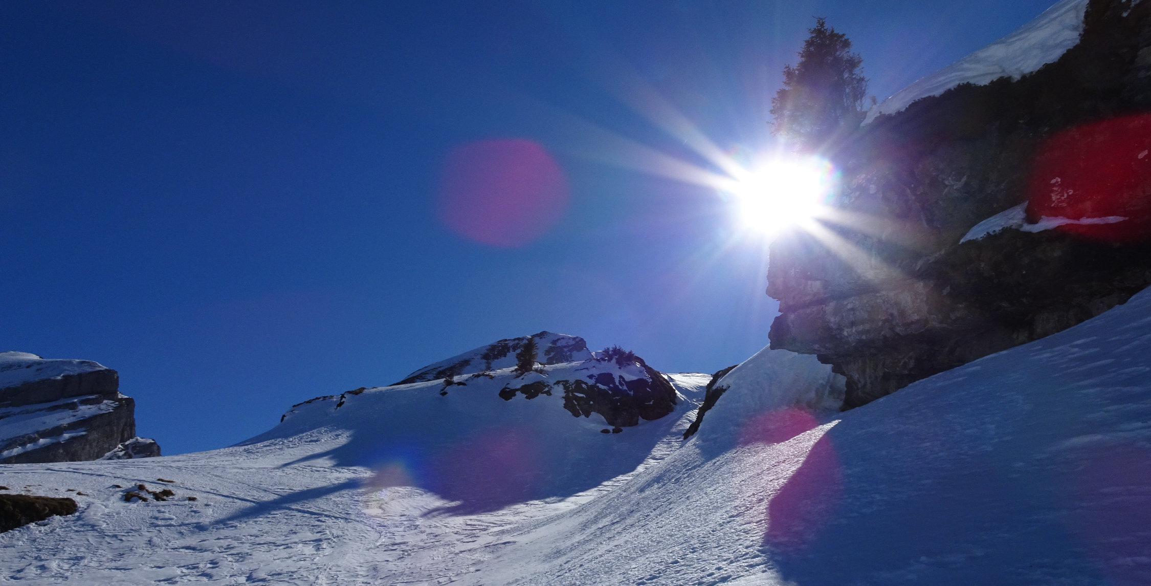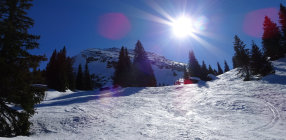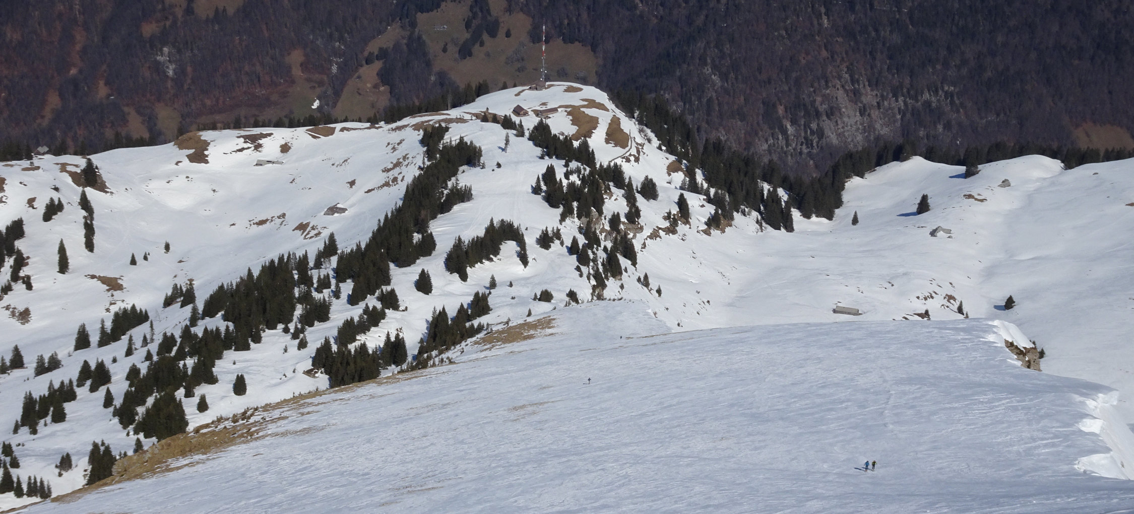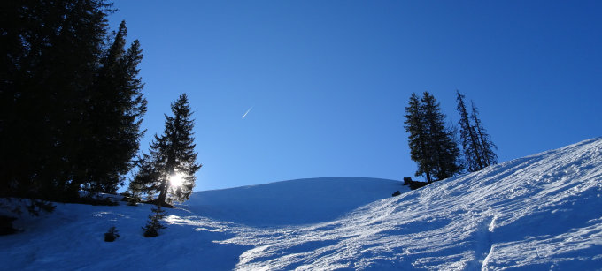 Die Verhältnisse am Selun waren eher schwierig. Von Starkenbach weg war die Aufstiegsspur bis zum Gipfel knallhart und in den steilen Passagen nur mit Harscheisen zu bewältigen. Die Freude an der Abfahrt hielt sich ebenfalls in Grenzen. Skifahren wie über einen Güterbahnhof.