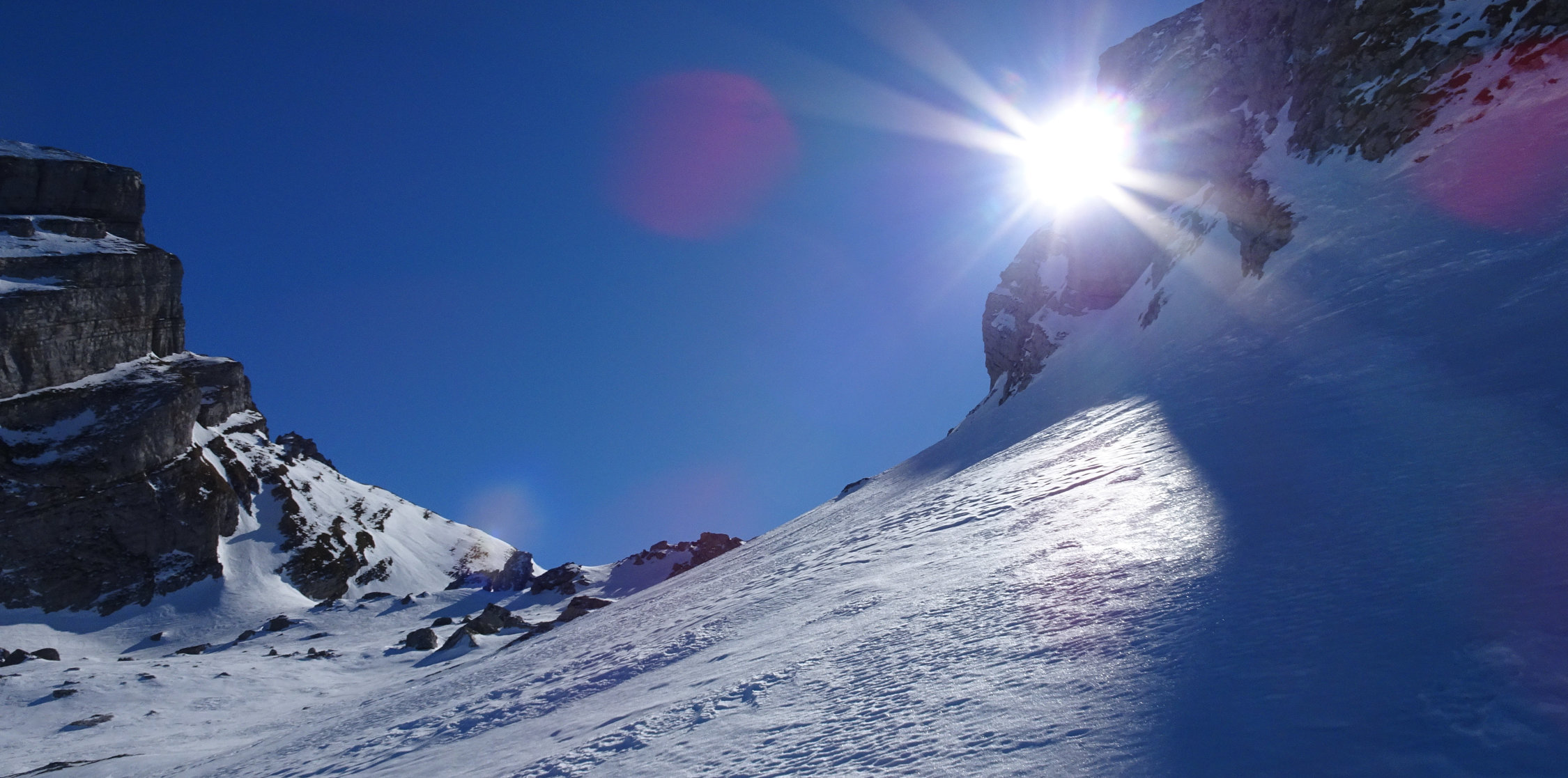 Im Anschluss an den Selun bin ich noch via Torloch zum Frümseltal aufgestiegen. Auch hier habe ich sehr harte und eher schwierige Verhältnisse angetroffen. Die Idee, den Brisi zu besteigen habe ich fallen gelassen. Das war mir bei diesen Verhältnissen zu gefährlich.