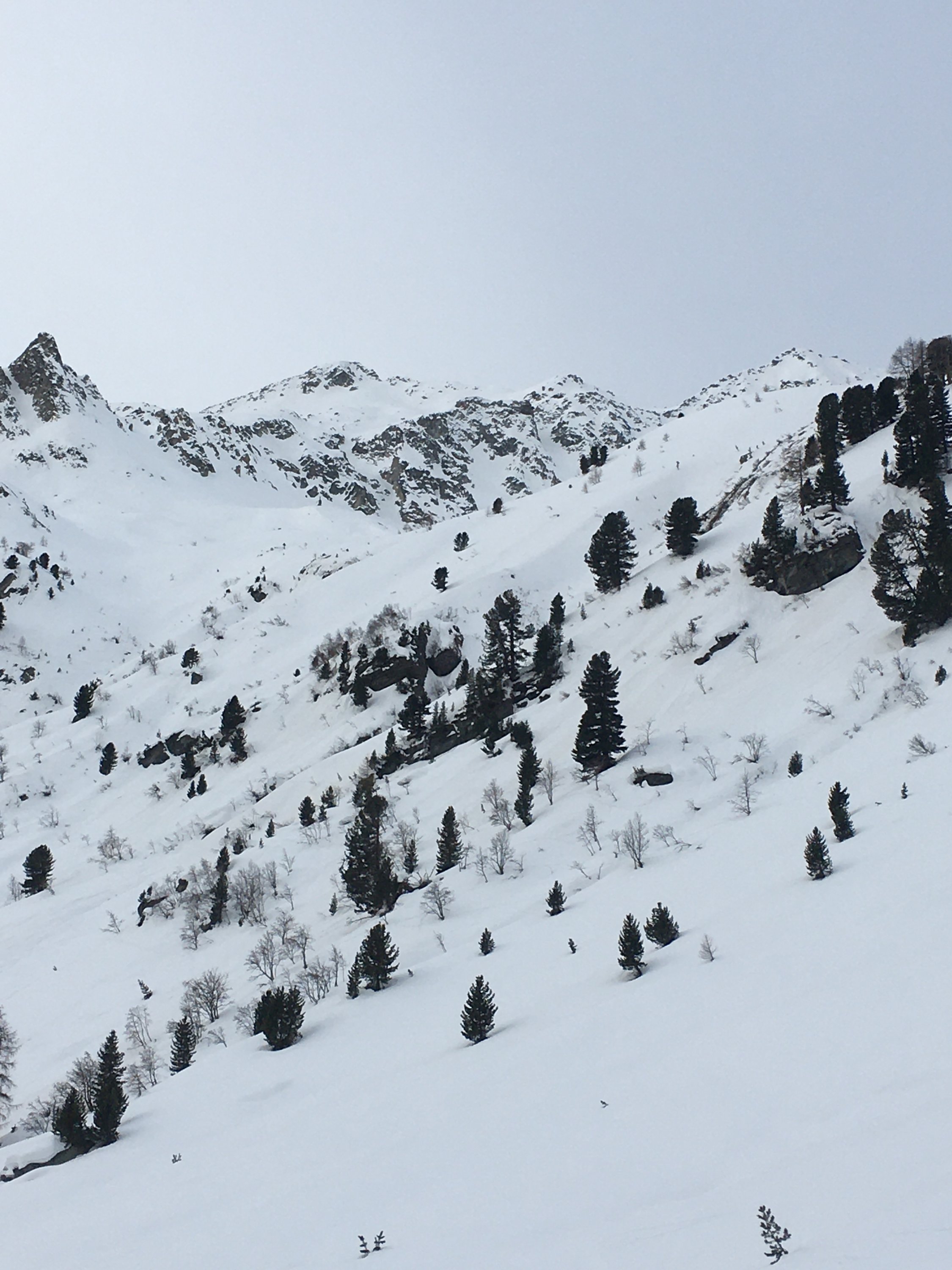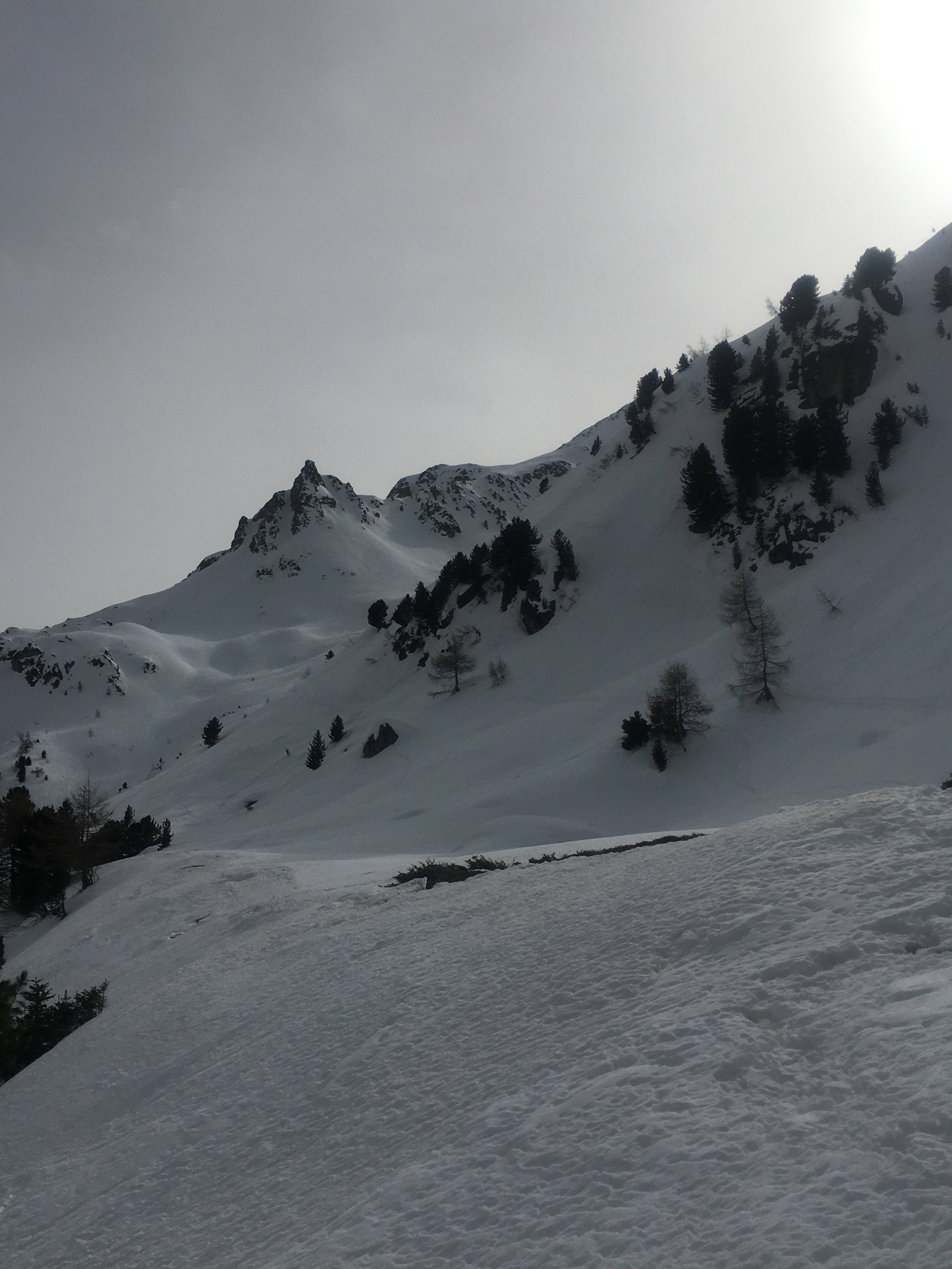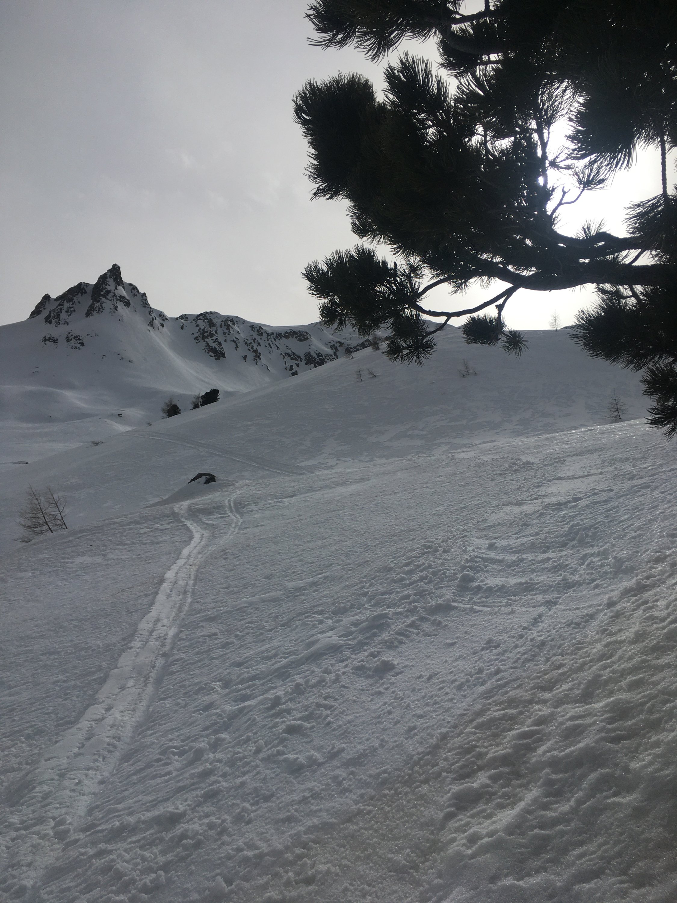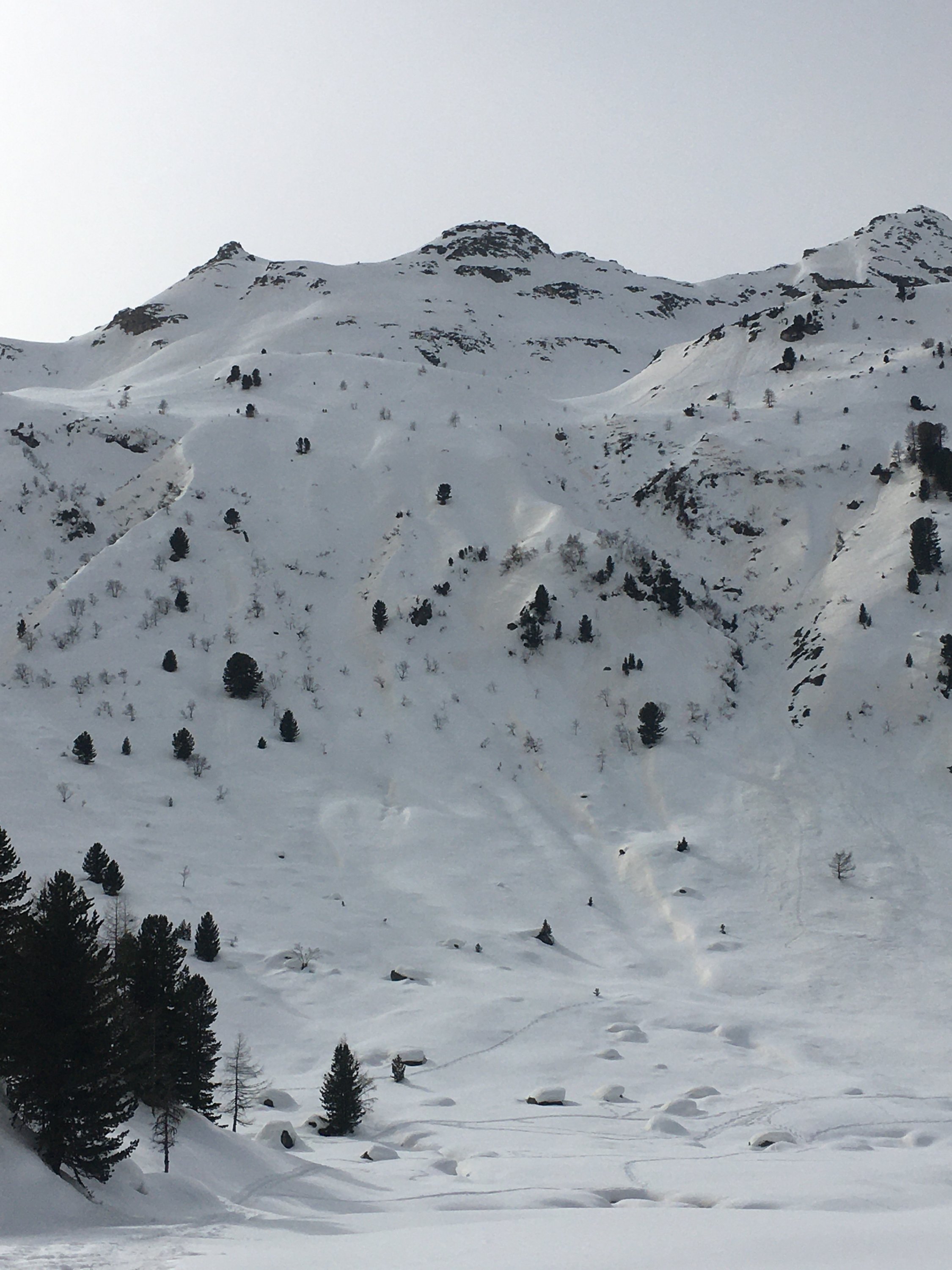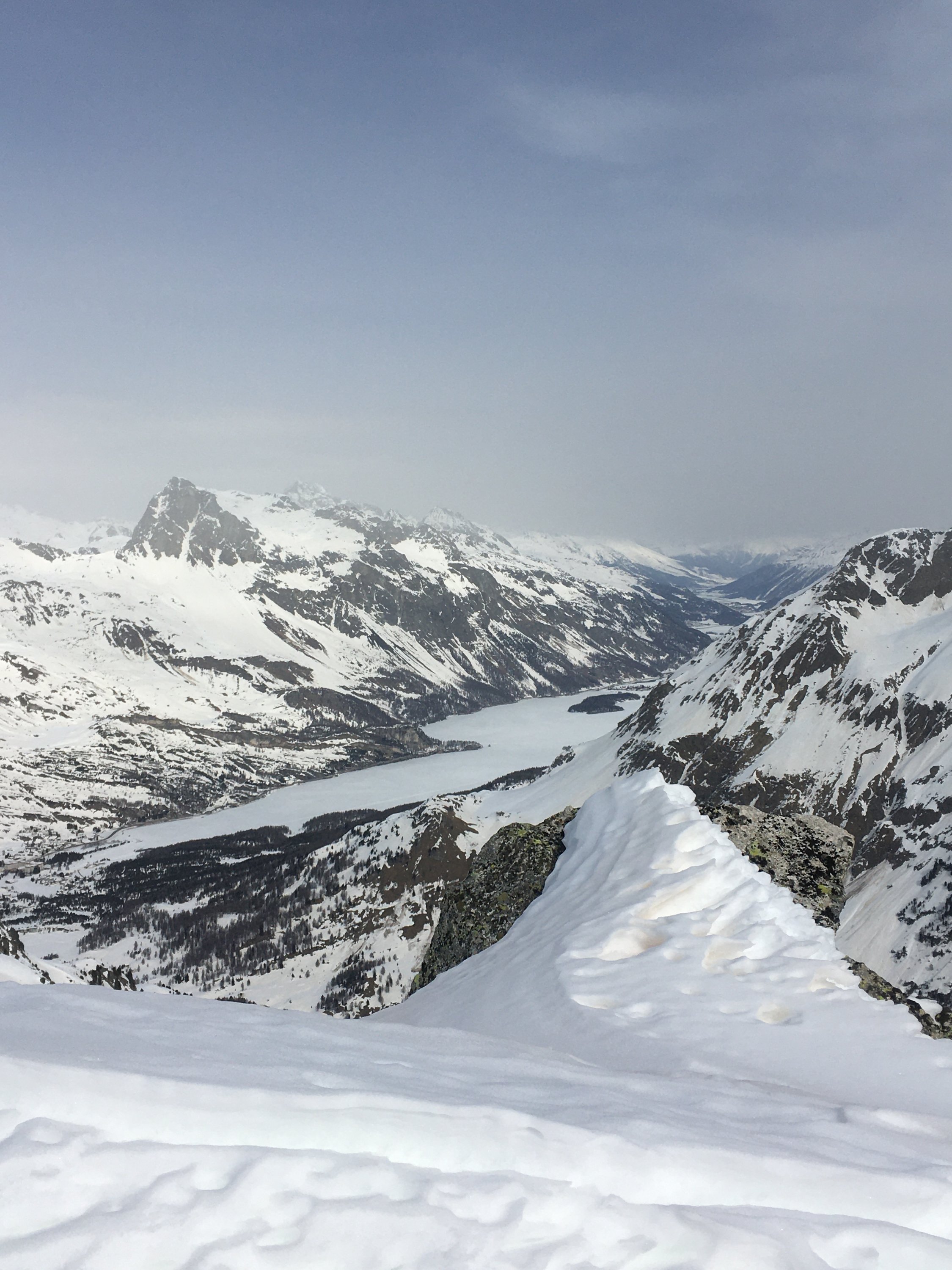 Start Parkplatz Maloja Orden 7 Uhr, minus 5 Grad, windstill. Zuerst auf Langlaufloipe und nach Brücke auf Strässchen bis P. 1838 und weiter auf Schneeschuhspur bis Läc da Cavloc. Nun gute Spur vorhanden bis Punkt 2622. Nun habe ich Traverse nach Westen in Pulver, Firm und auch Bruchharst gespurt und Schlussaufstieg zum Gipfel auf Südgrat mit Ski bis Gipfel. Abfahrt wie Aufstieg, Pulver, Firn hart und weich und auch Bruchharst bis Höhe 2300 m. Im Bosch da Cavloc bis See schöner weicher Firn. Zum Ausgangspunkt bin ich der gespurten Alpstrasse abgefahren, einige kurze Gegensteigungen. Abfahrtverhältnisse nicht perfekt, aber trotzdem gut. Sehr sichere Verhältnisse heute, man traversiert einige steile Hänge. War alleine am Berg.