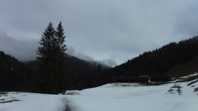 Tourenbeginn um 08:45 Uhr bei -1°C im diesigen Griesel, der am Vormittag aufhörte und im Tal die Wolkenwand dann aufriss. Mit zunehmender Höhe geriet ich jedoch in vorherrschenden Hochnebel, so dass es am Gipfel leider keine Sicht gab. Zum Gipfel war heute nicht mal ein Skitüerler über die Ackernalm unterwegs. Lediglich beim Forsthaus Valepp traf ich auf einen Urlauber, der am Ende der geräumten Valepper Straße wieder umkehrte. Valepper Straße ließ sich vom Spitzingsee mit dem Radl gut fahren. Allerdings gibt es 4 großflächig vereiste Stellen unterhalb der Waitzinger Alm, jedoch im horizontalen Bereich, so dass man mit dem Radl gut rüber kommt.