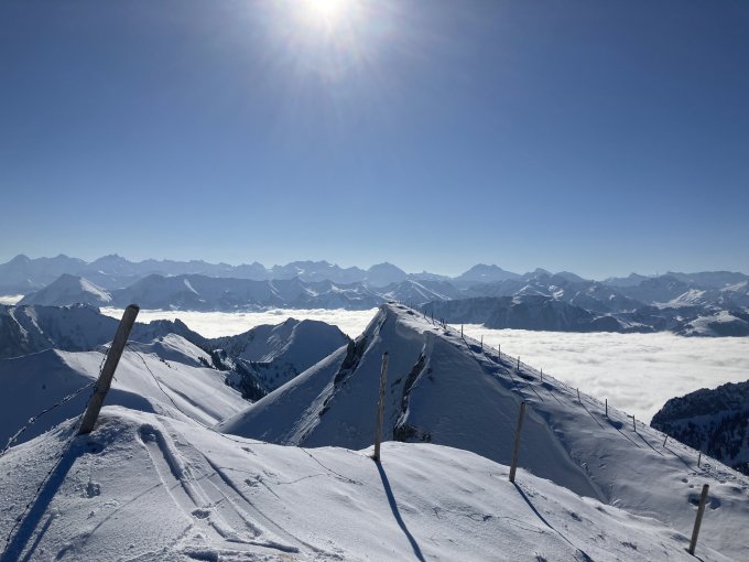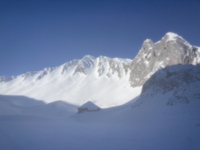 5-10cm Pulver Schnee von unten bis oben auf harter Unterlage.