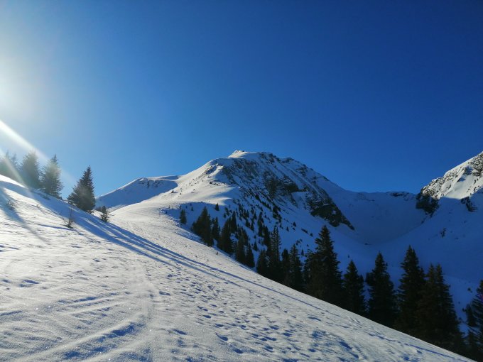 Im allgemeinen gute Verhältnisse, es gab ein paar Zentimeter Schnnee. Die alten Spuren waren natürlich immer noch sicht- und spürbar, trotzdem gab es einige schöne Schwünge. Nordgrat heute ohne Steigeisen problemlos machbar. Abfahrt N-Flanke auch sehr gut mit dem Pulverschnee auf harter Unterlage.