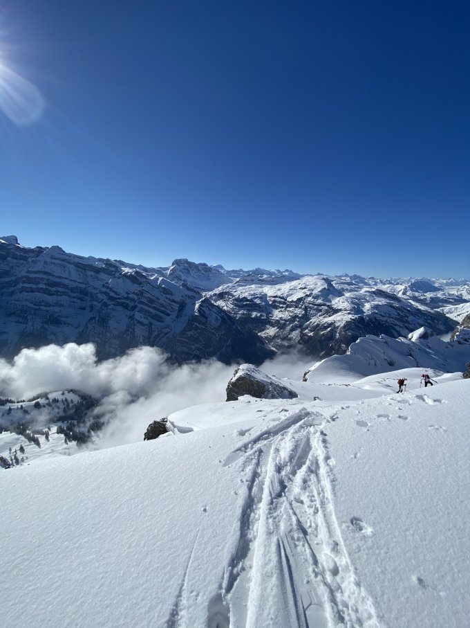 Griffig im Aufstieg (über Rinderweid geschlossene Schneedecke, direkt durch den Wald nicht zu empfehlen). Ab ca. 1300hm gut 10cm Pulver, dann bis fast 20cm auf Gipfelhöhe. NW Abfahrt ausgezeichnet.